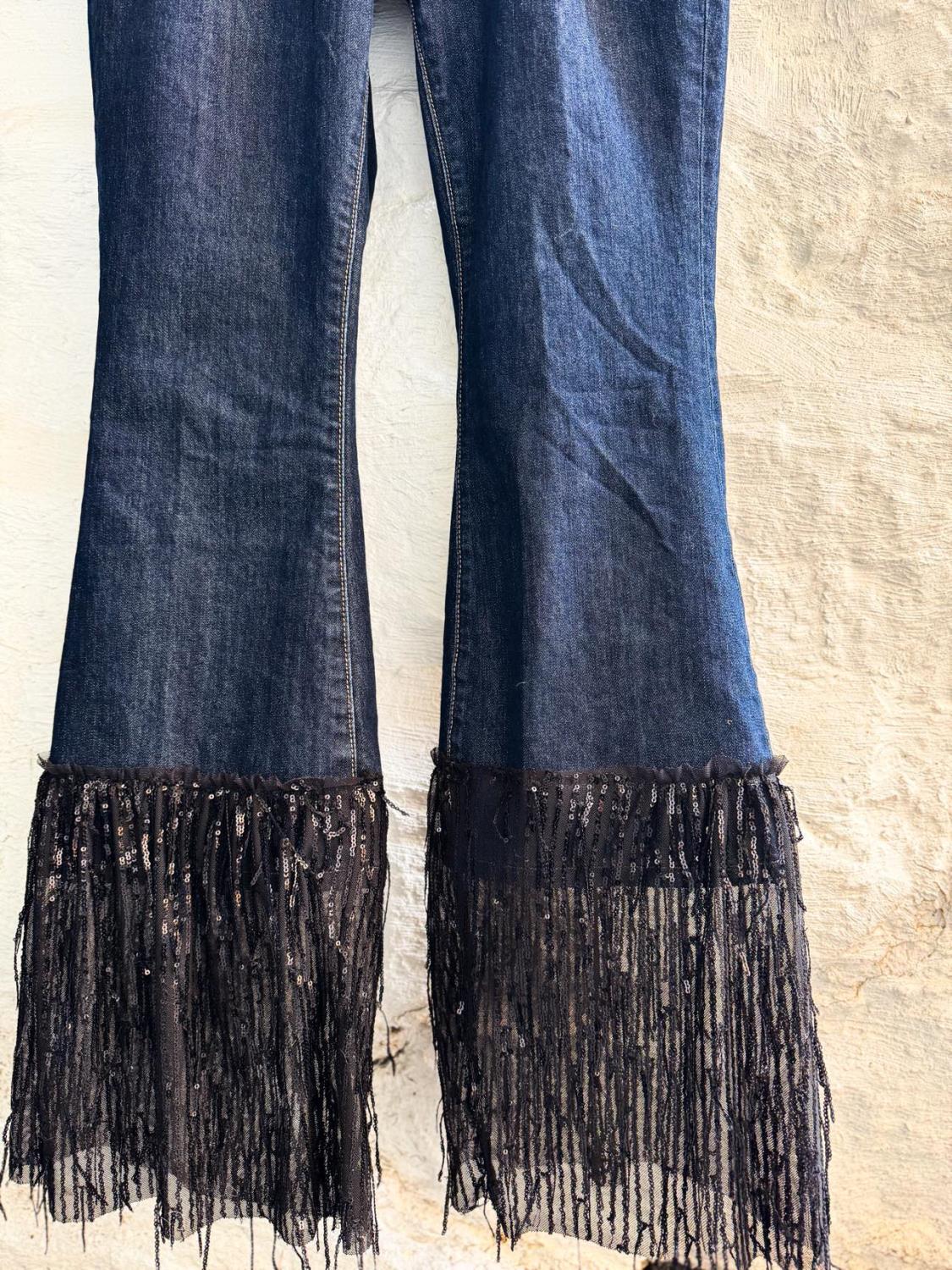 Vi digger detaljene med paljettene nederst på beina.