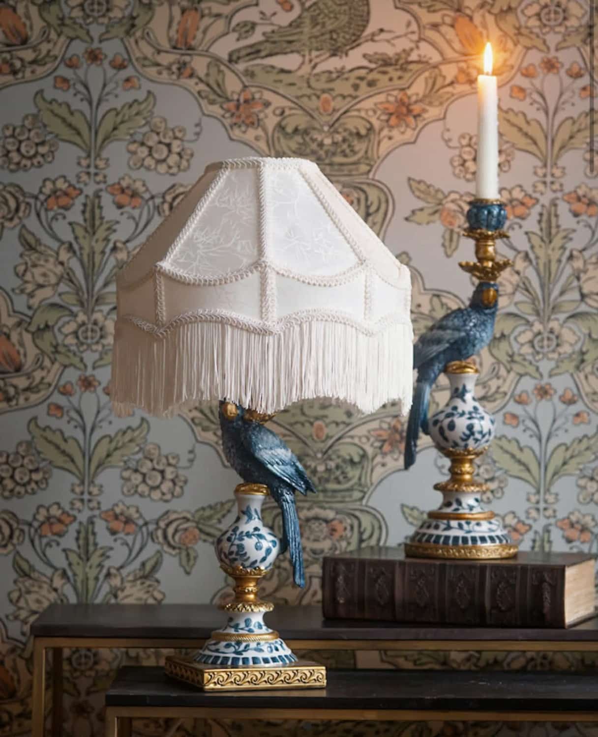 Nydelig lysestaket med papegøye som motiv i en lekker farge.
