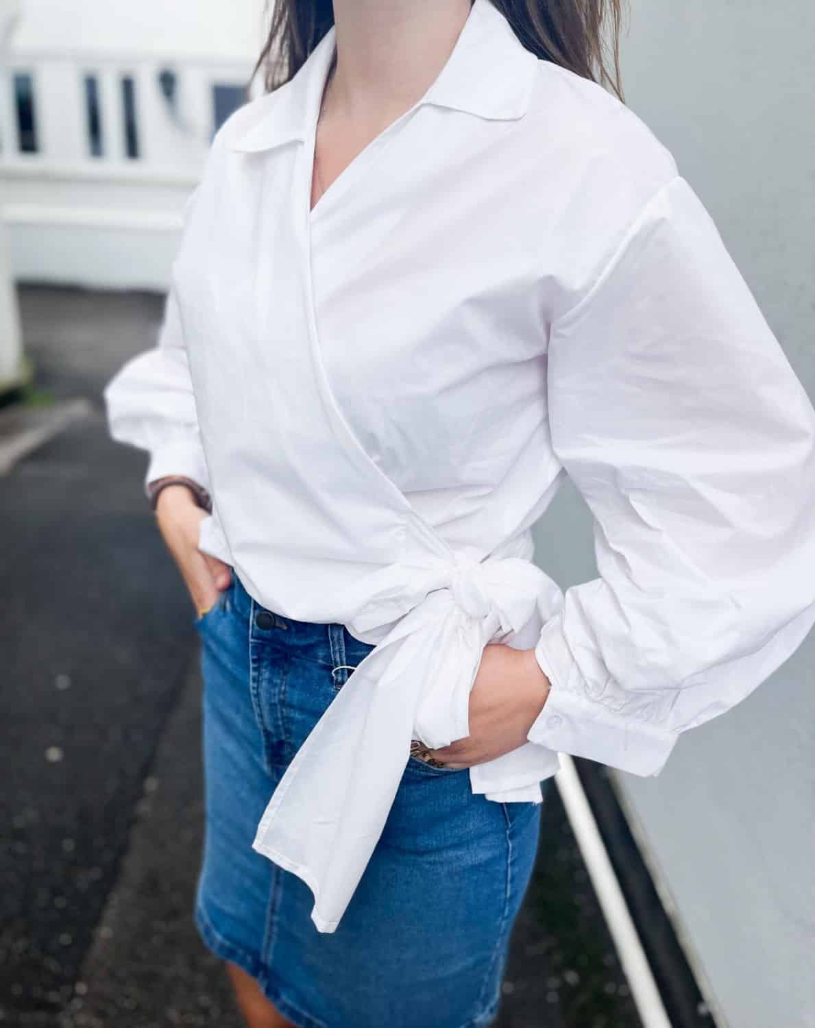 Penelope shirt er en tøff bluse – skjorte som kan knytes i front. Både som en sløyfe eller vanlig knute.