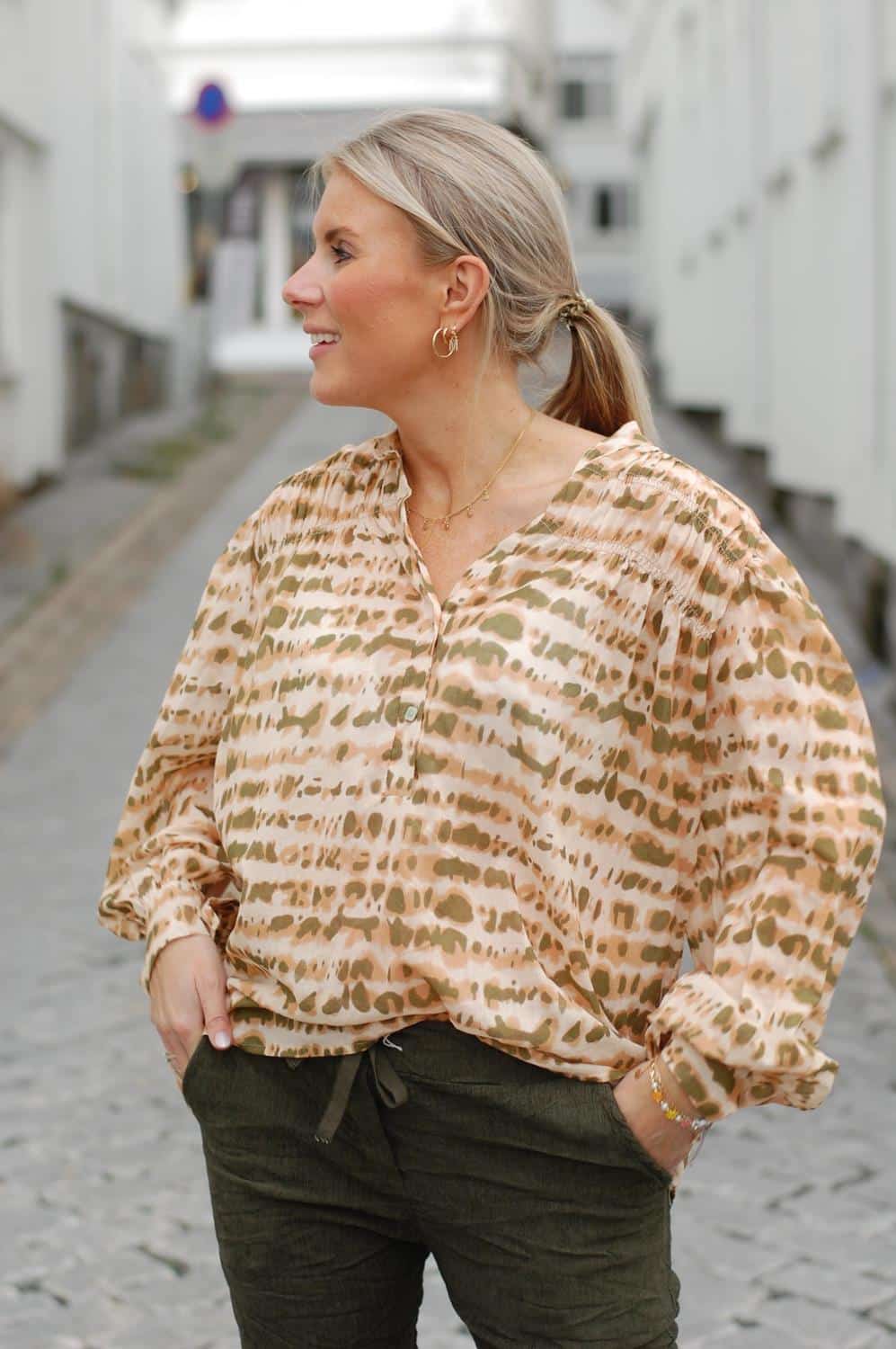 Utrolig fin bluse i batikk-mønster. Delikate farger og i 100% bomull.