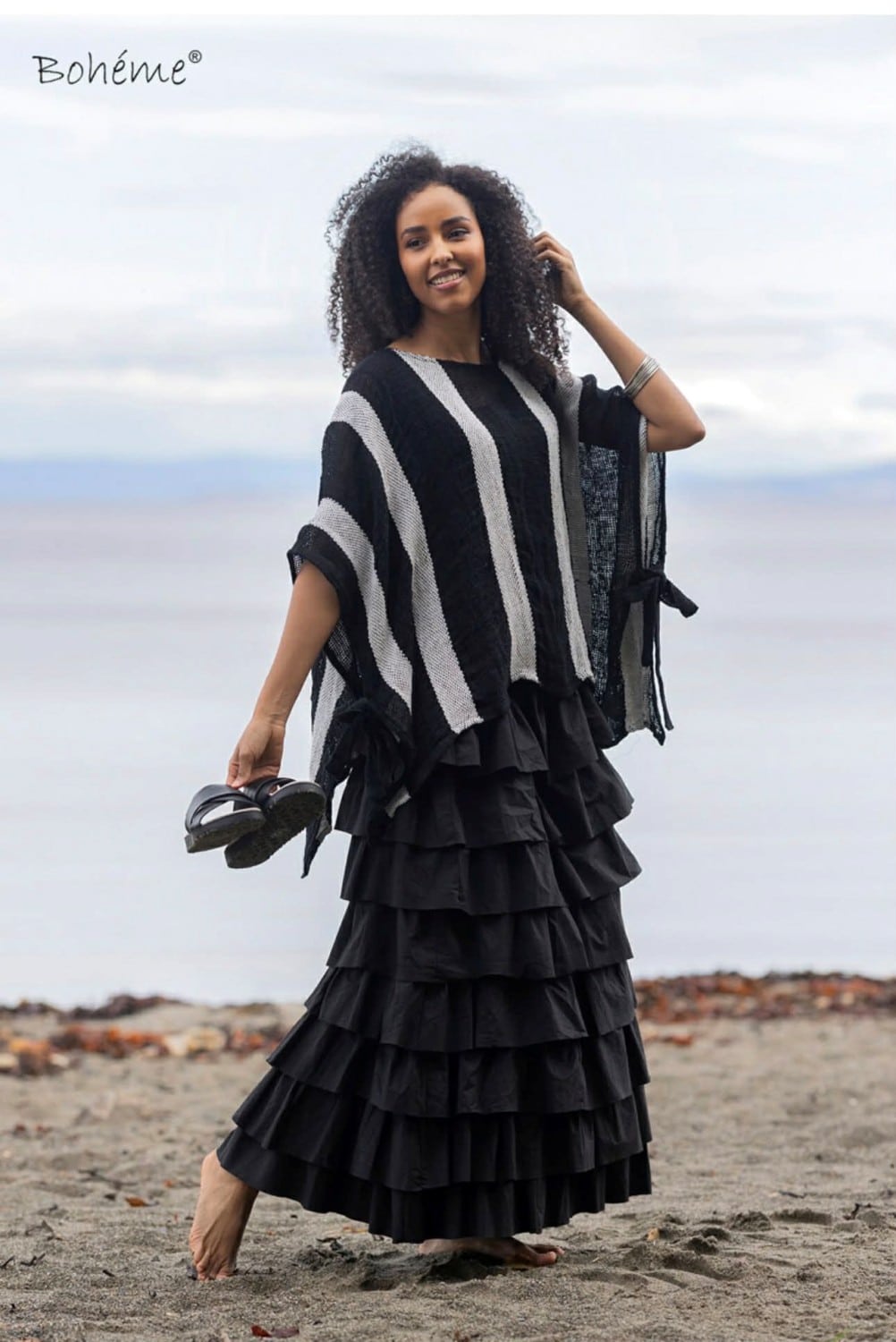 Denne ponchoen er perfekt å bruke over kjoler – bluser – skjorter eller bare ha en singlett under.