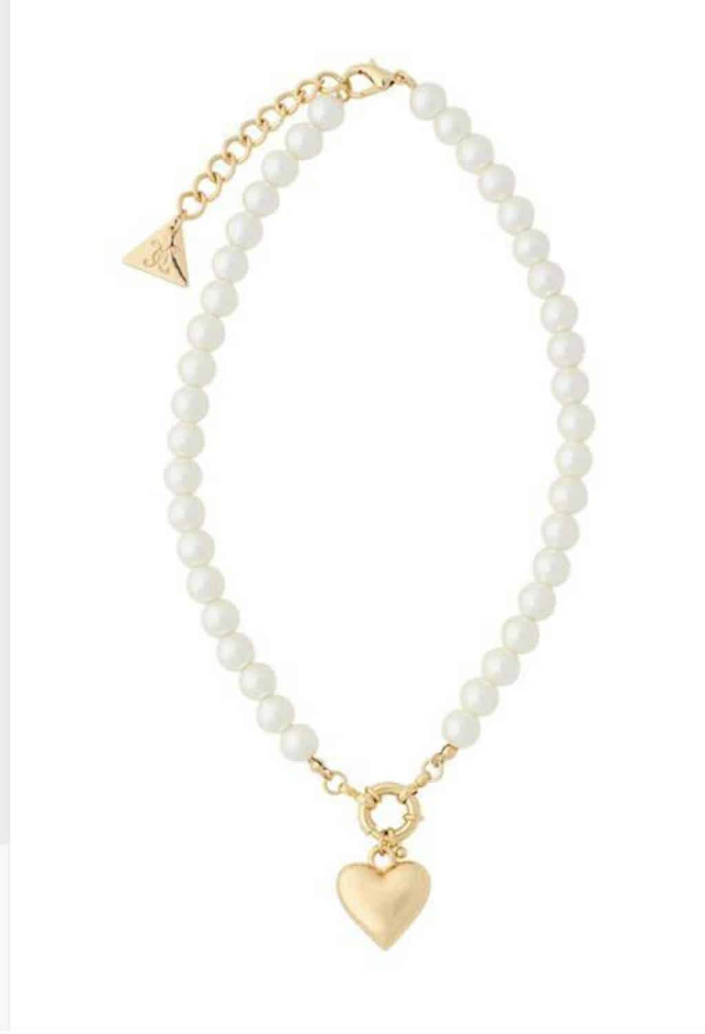 Bow19 Pearl Necklace Gold Heart