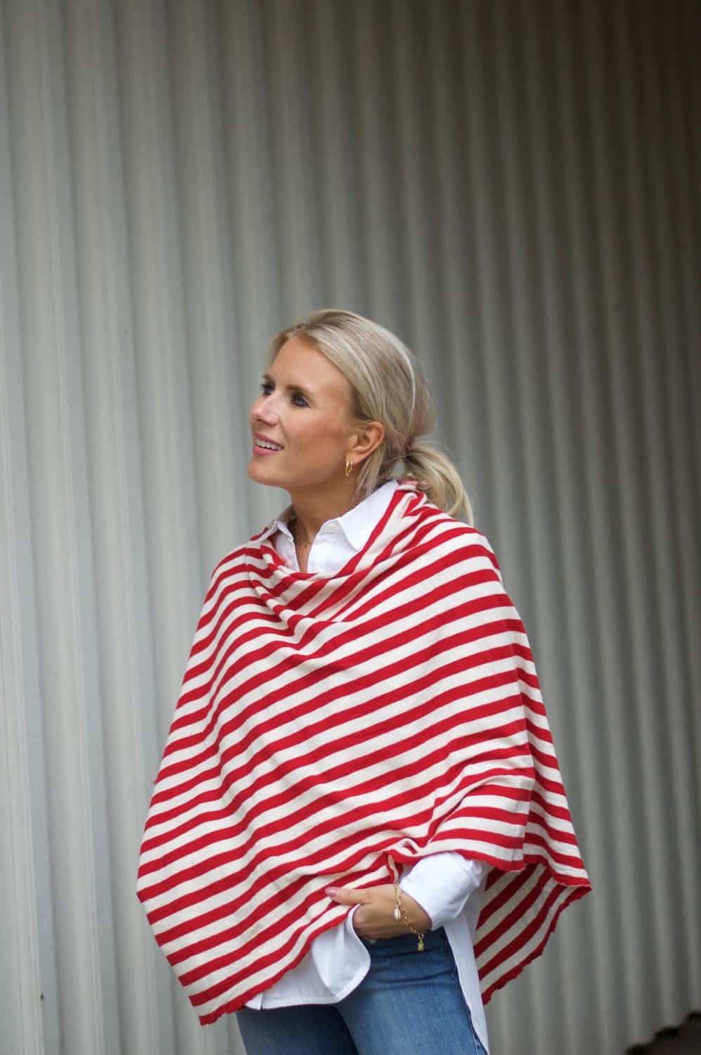 Hjem | Sjal / Poncho | By Basics Raw White /chili Red