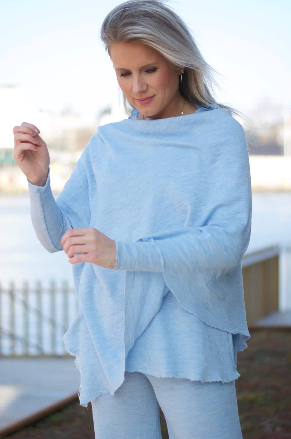 By Basics Poncho Sky Blue Melange