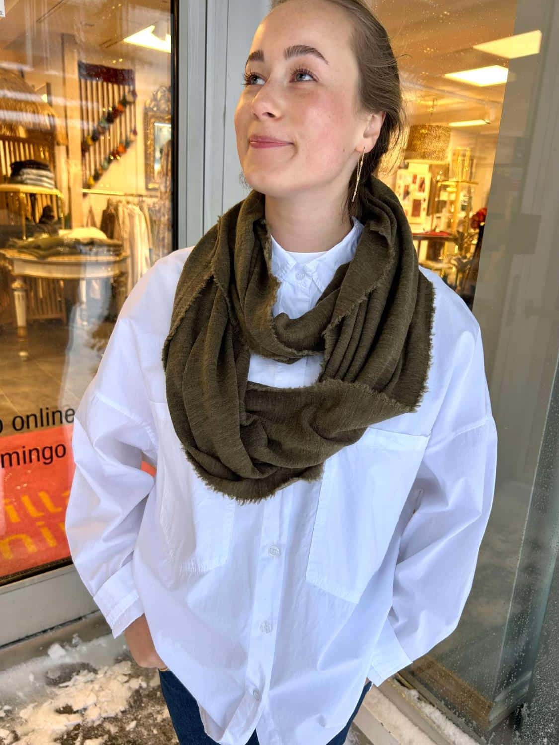Deilig og varmt tubeskjef fra By Basics. Skjerfet er sydd sammen, slik at det ikke er noen løse ender.