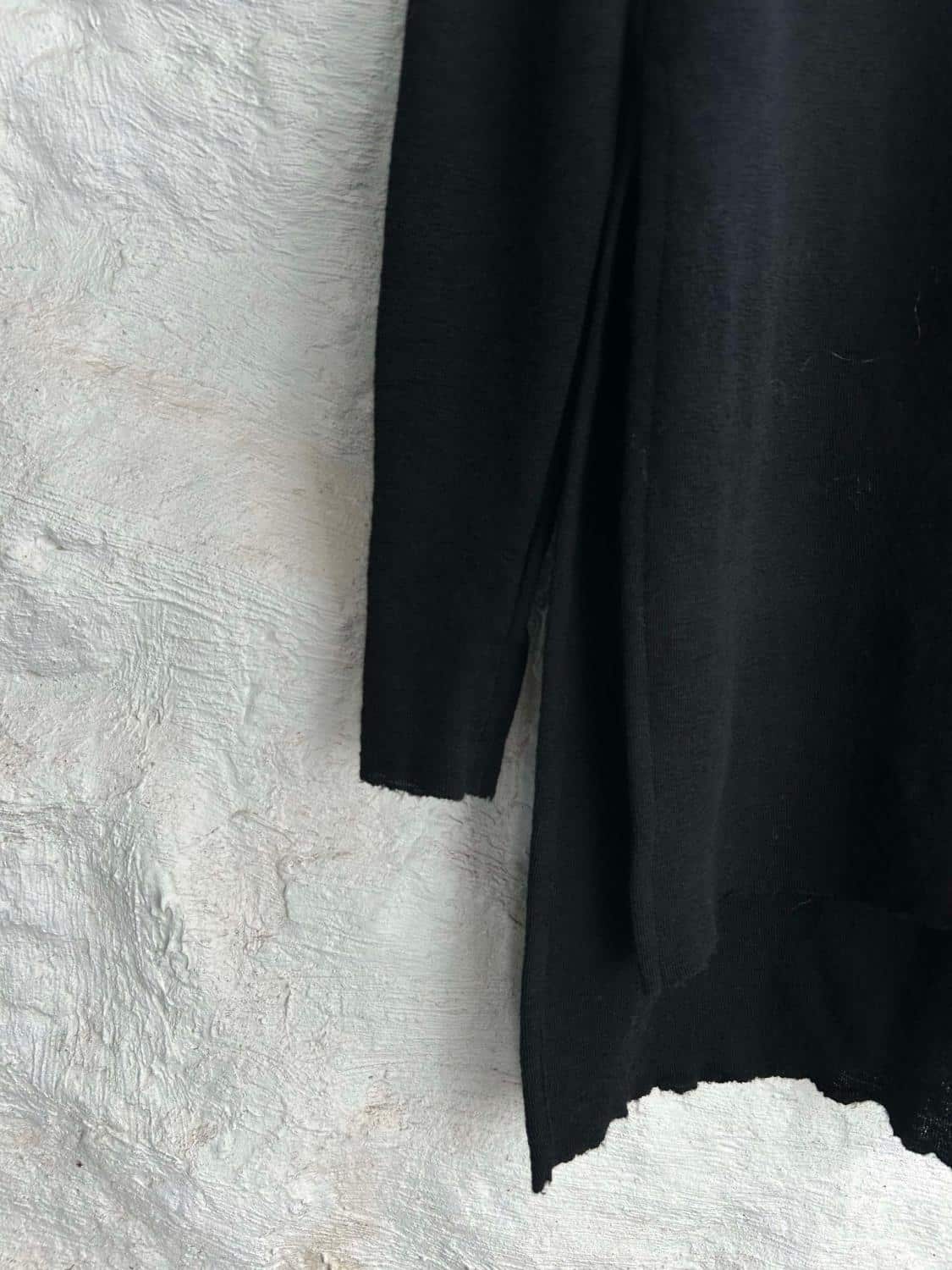 Splitt i sidene, fin hals ( ikke for stram) og lange fine ermer.