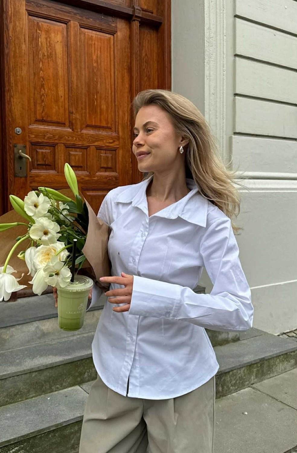 Favoritt skjorte denne høsten. Brede «mansjetter», knepping og snøring i livet etter eget ønske. Denne skjorten går litt inn i midjen.