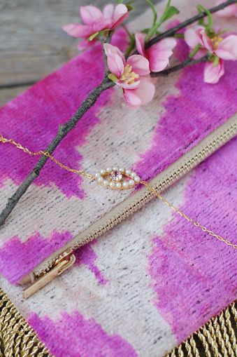 «The eye» med swarovski krystaller og perler.