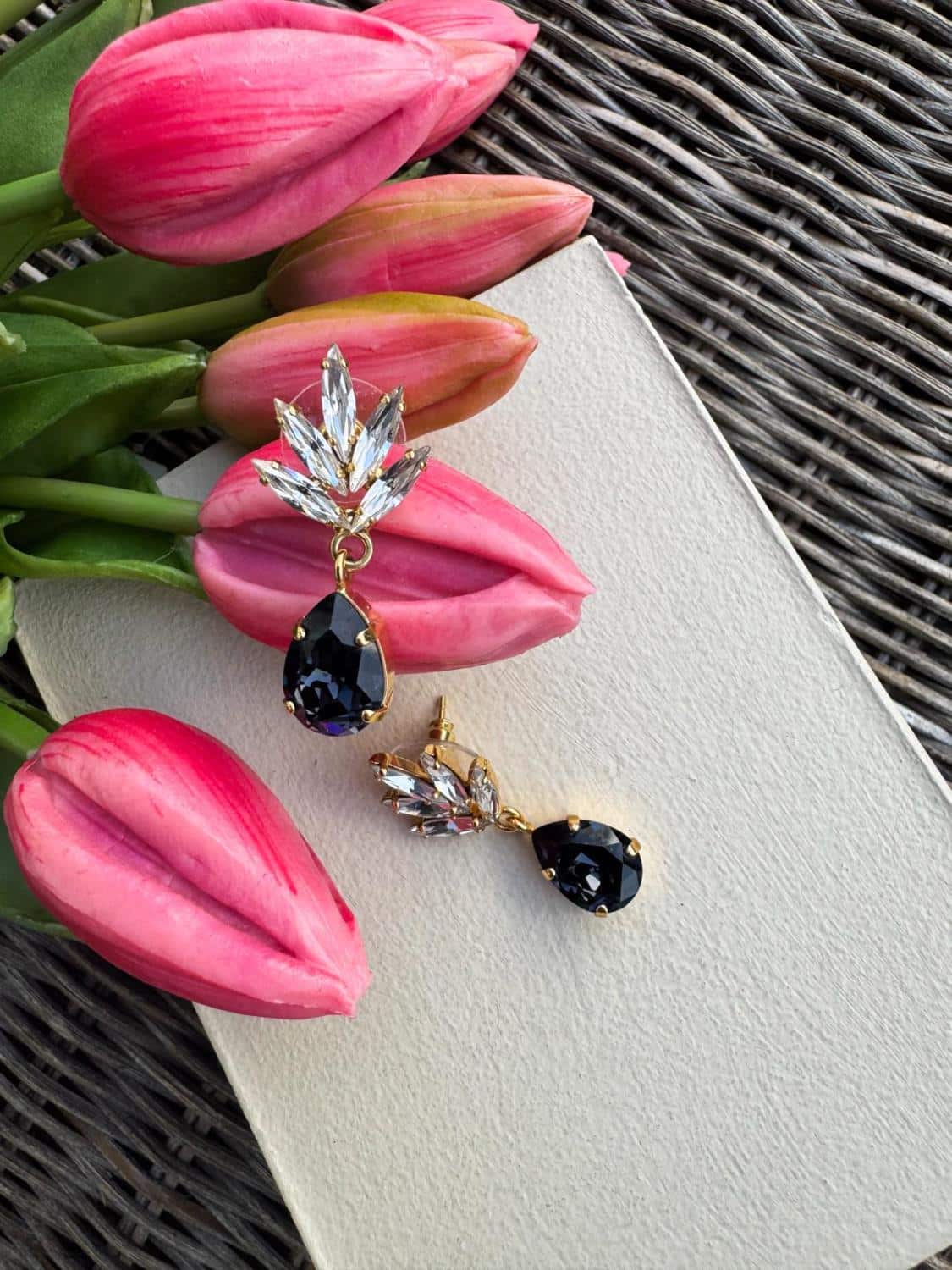 Søte øredobber med swarovski – krystaller i en delikat navyfarge.