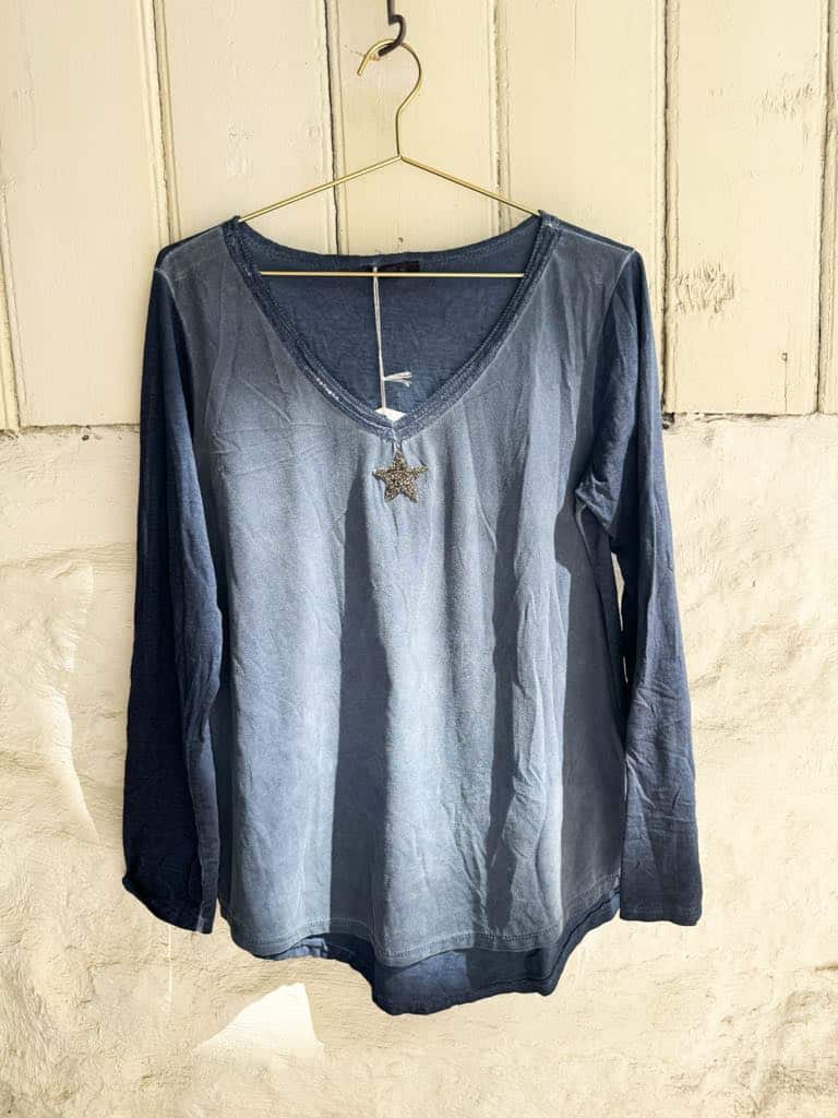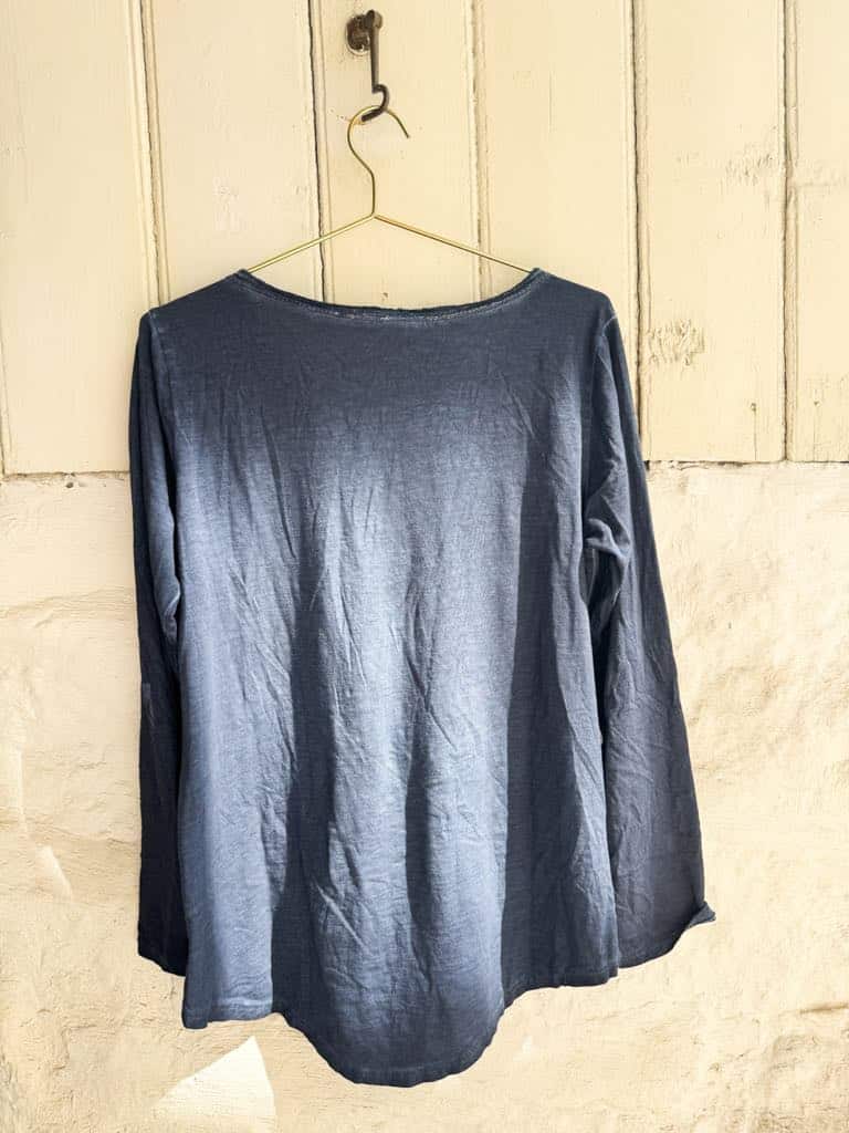 Den har en «semsket» kvalitet i front og bomull ellers.