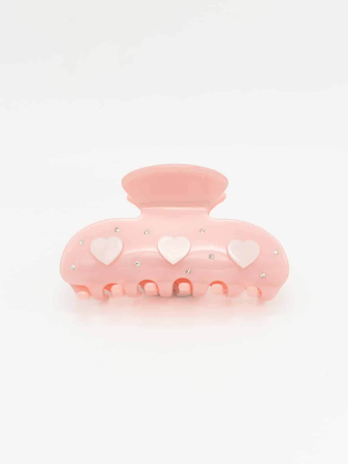 En mellomstor hårklype med hvite hjerter og skinnende steiner. Passer til en lav bun eller «half-up-half-down» frisyre.