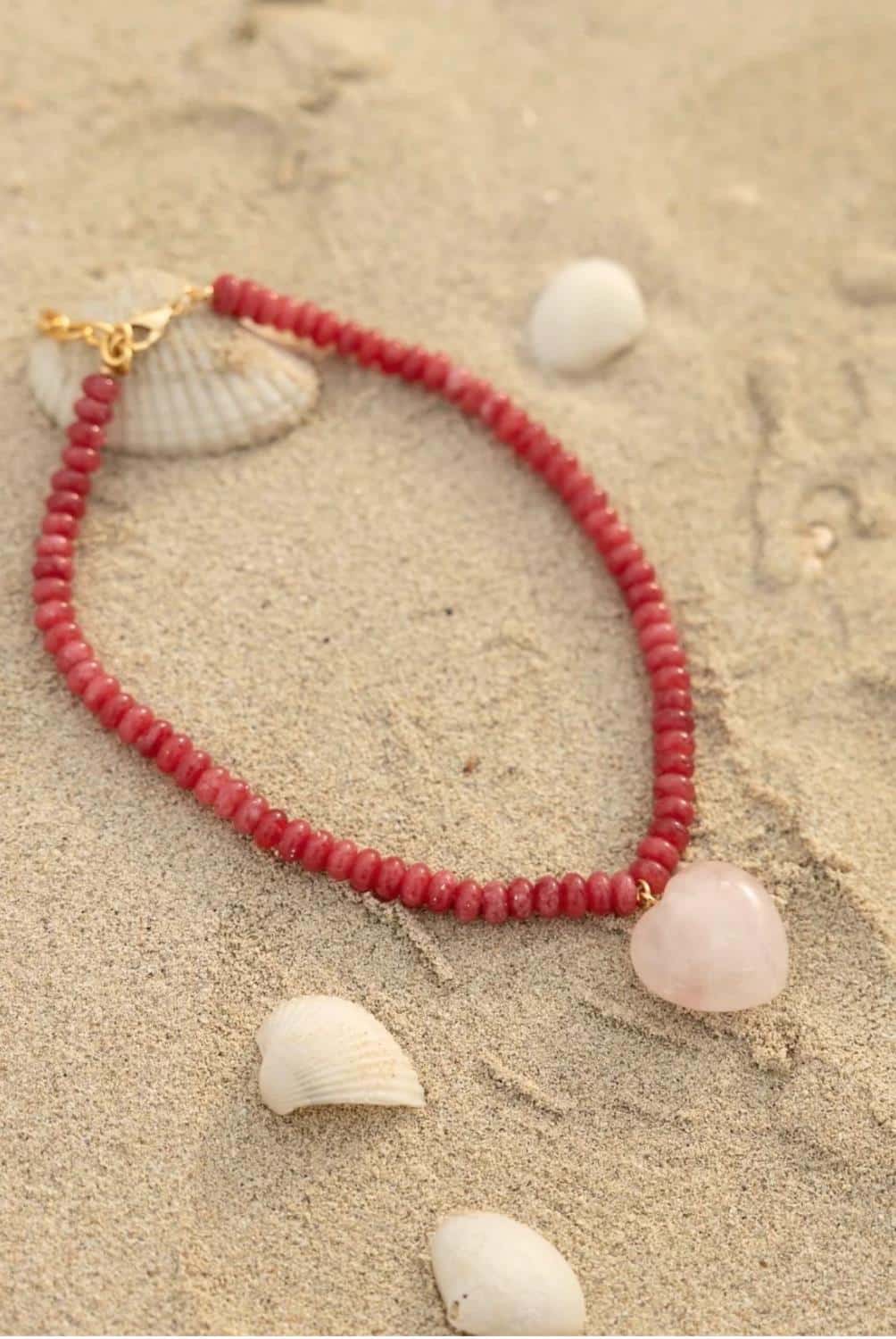 Dua betyr kjærlighet, og her på Crystal Haze feirer vi alltid kjærlighet. Dua-halskjedet i flerfarget er laget av en blanding av naturstein: Rosenkvarts og rød karneol.