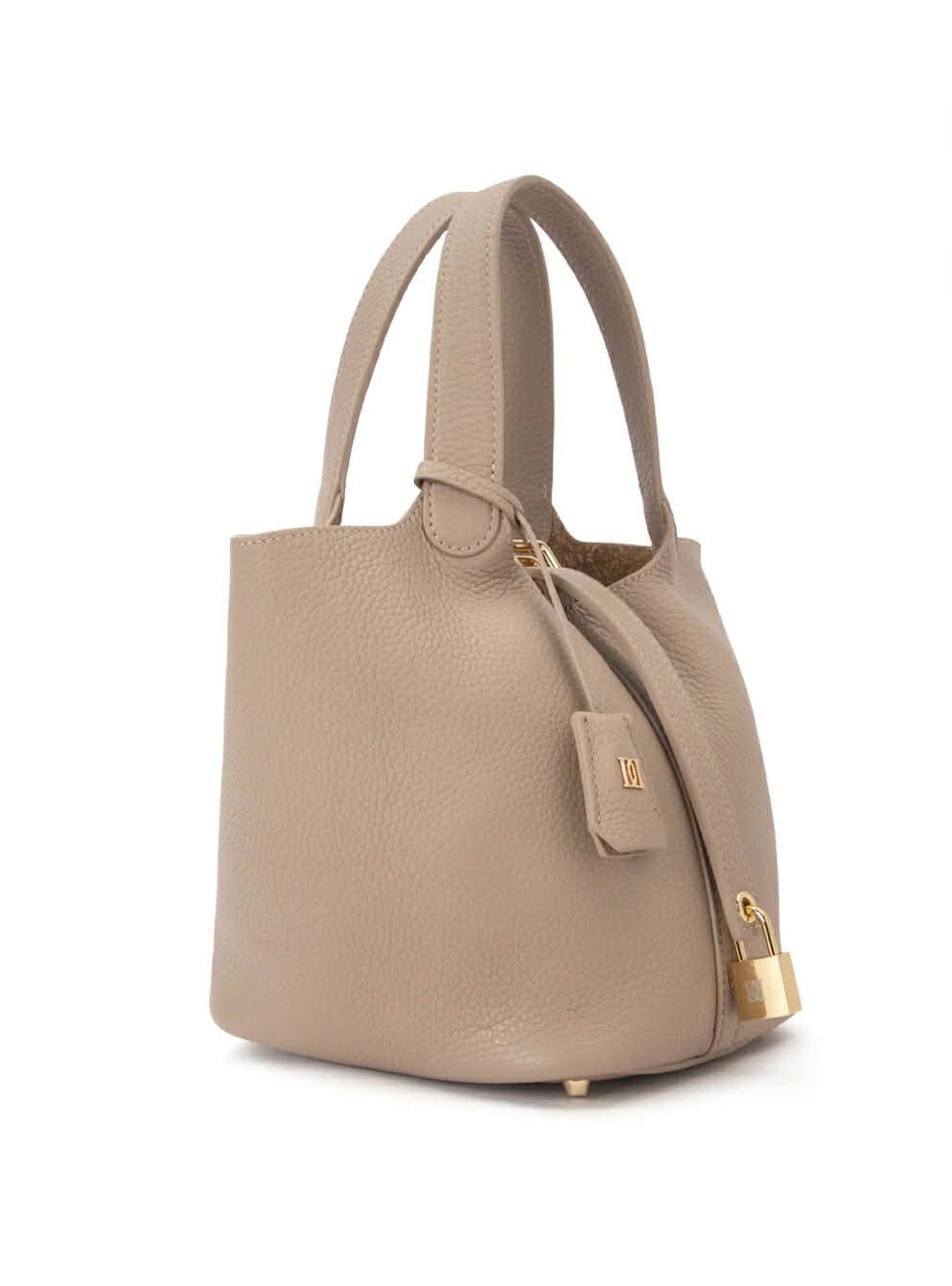 Dark Leather Bucket Bag Mini Dark Sand