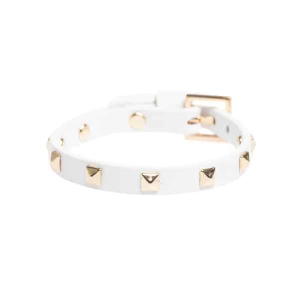 Dark Leather Stud Bracelet Mini White