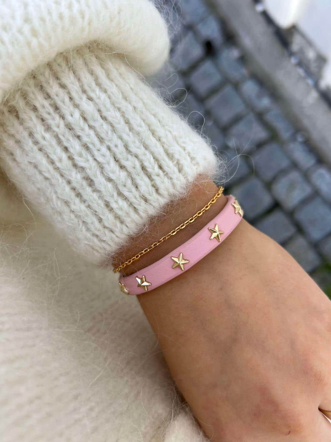 Lekkert Leather Star Stud Bracelet Mini fra Dark Department. Armbåndet er i ekte skinn med stjerner.