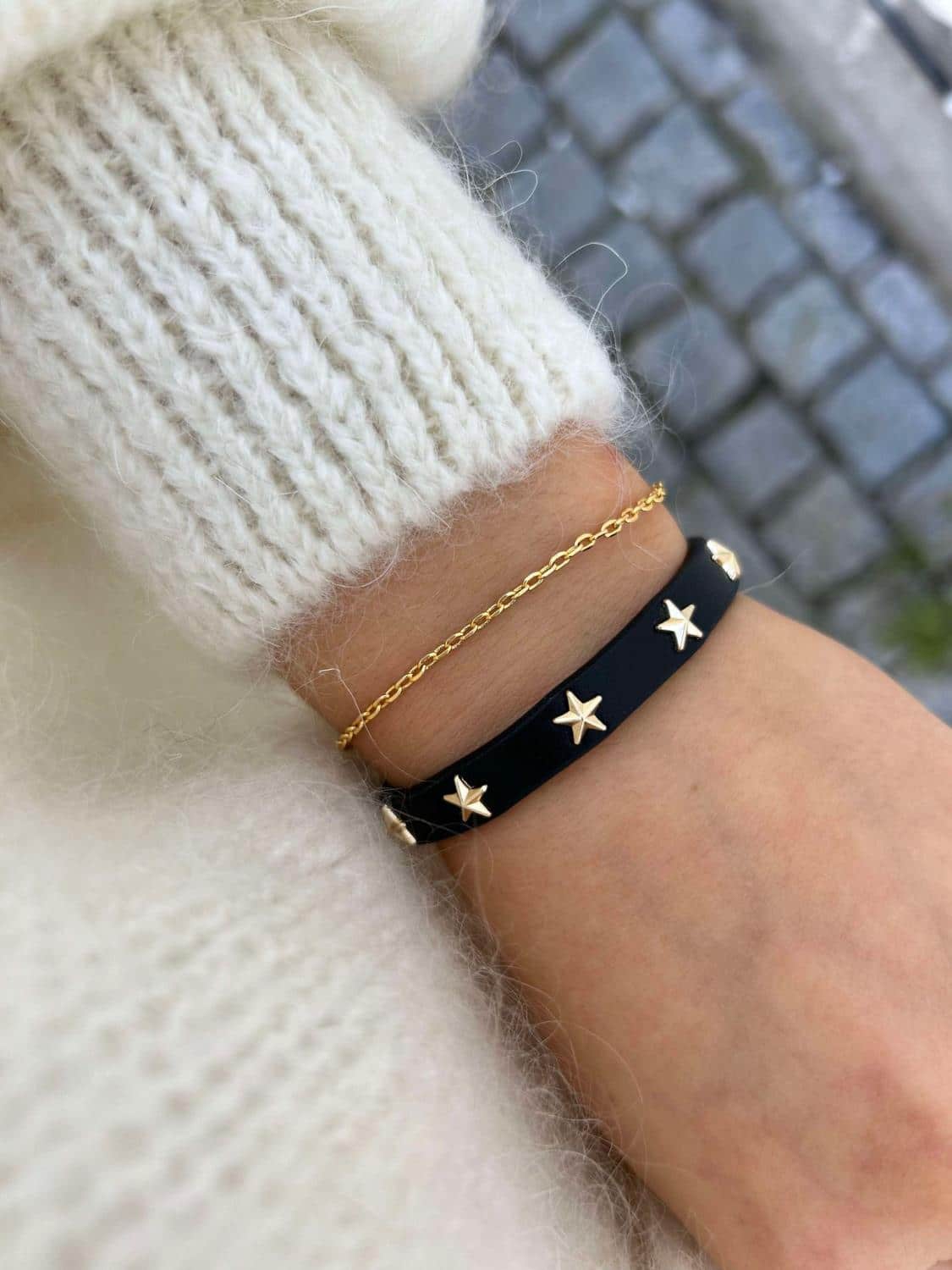 Lekkert Leather Star Stud Bracelet Mini fra Dark Department. Armbåndet er i ekte skinn med stjerner.