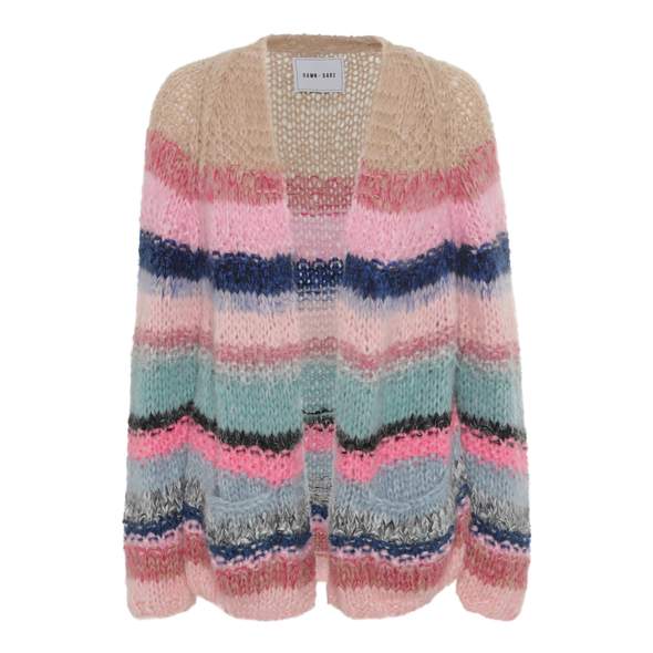 Mars Multi Stripe cardigan er en håndstrikket mohair cardigan. Cardiganen har lange ermer og to lommer foran. Stilen Mars er en av våre mest populære strikketøy og i multistripen får du en cardigan med vakre fargekombinasjoner.
