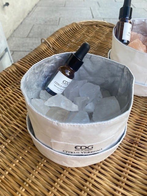 Det følger også med en liten flaske med olje som du kan dryppe over krystallene.