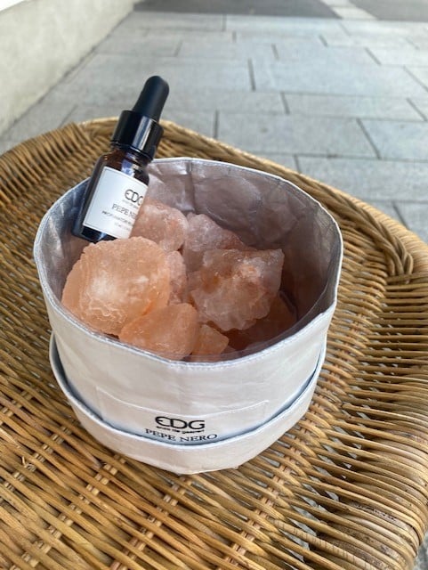 Det følger også med en liten flaske med olje som du kan dryppe over krystallene.