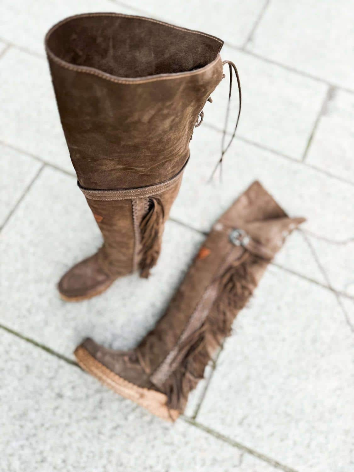 Sømmene på støvlen er håndsydd, metalldetaljene er 100% nikkelfrie og gummisåle.