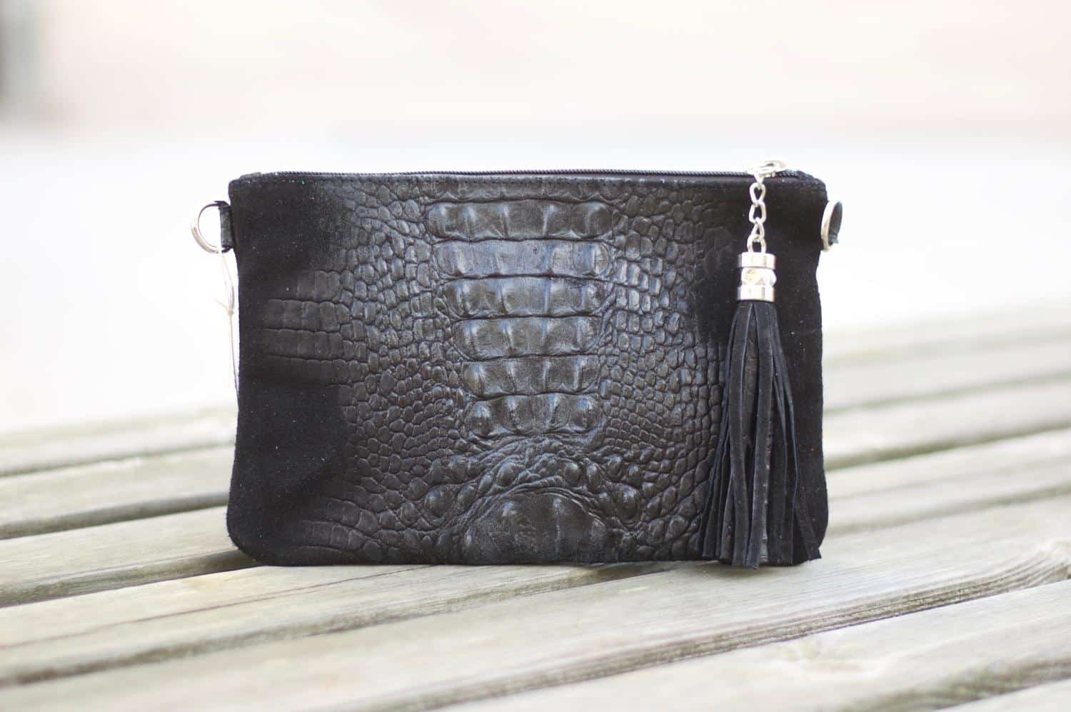 Kan brukes som både clutch og veske.