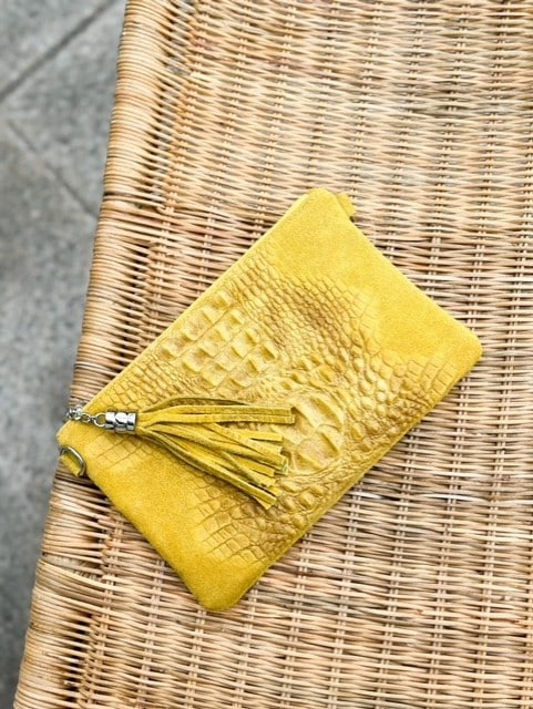 Glidelås med dusk og det følger med en skinnreim som er justerbar.
