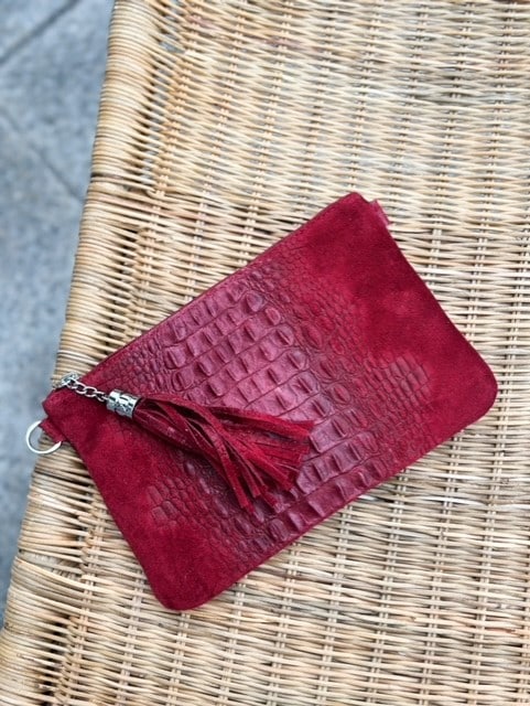 Glidelås med dusk og det følger med en skinnreim som er justerbar.