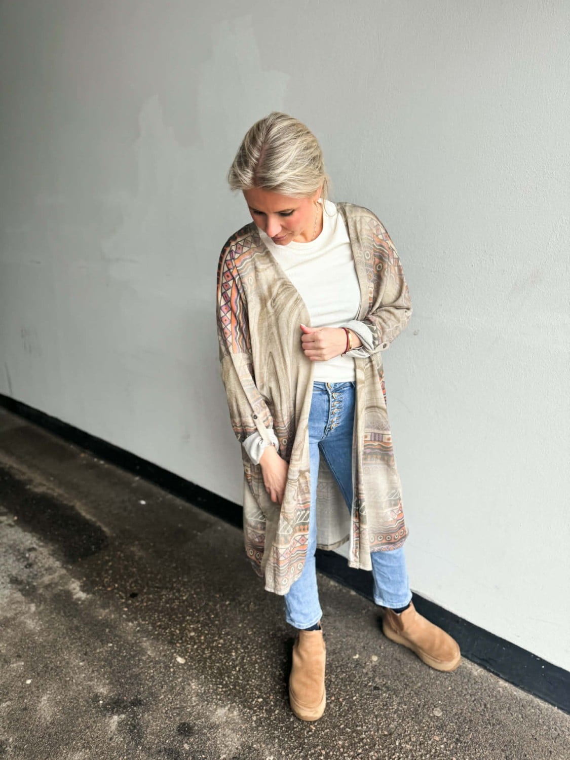 Superfin cardigan – jakke med lurex glitter, lekre farger og print.