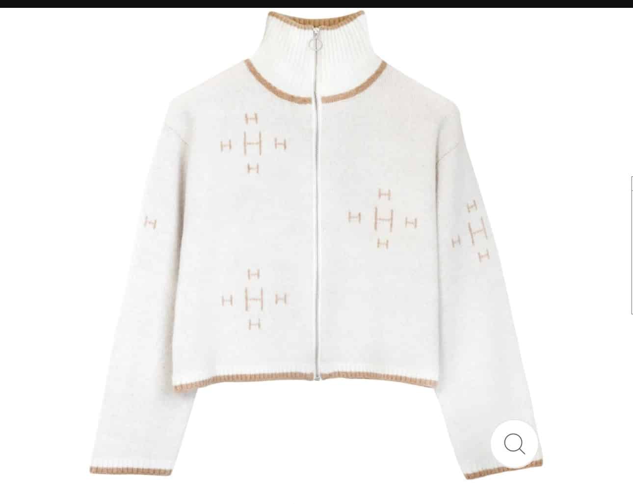 Prydet med intrikat strikkede H-logoer, har denne jakken en praktisk glidelås foran og lange ermer.