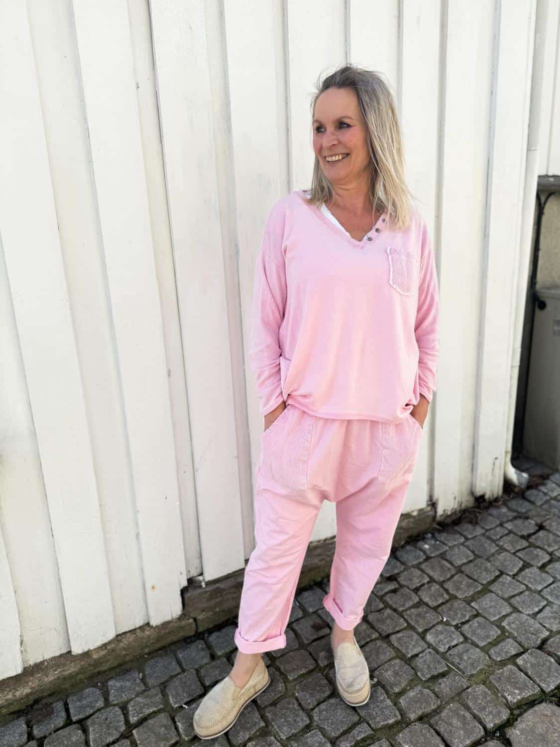 Sjekk de kule og comfy buksene med strikk i livet og lommer.