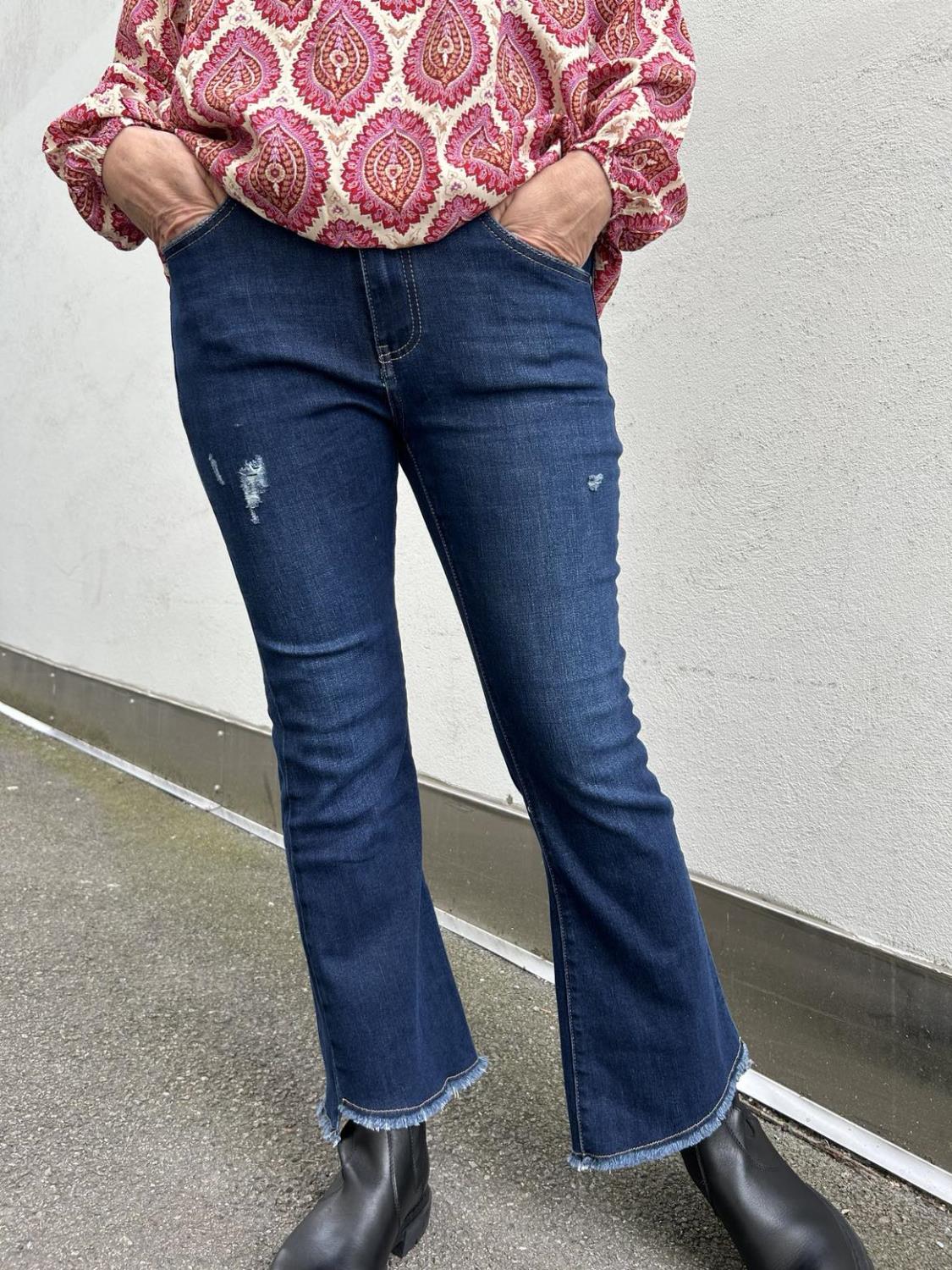 Lekker sleng bukse i en mørk jeans farge. Buksen har lommer foran og bak.