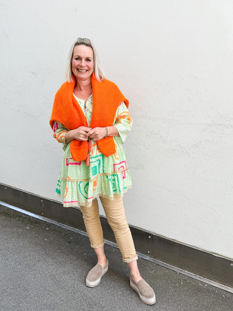 Strikk i livet og med knyting.
