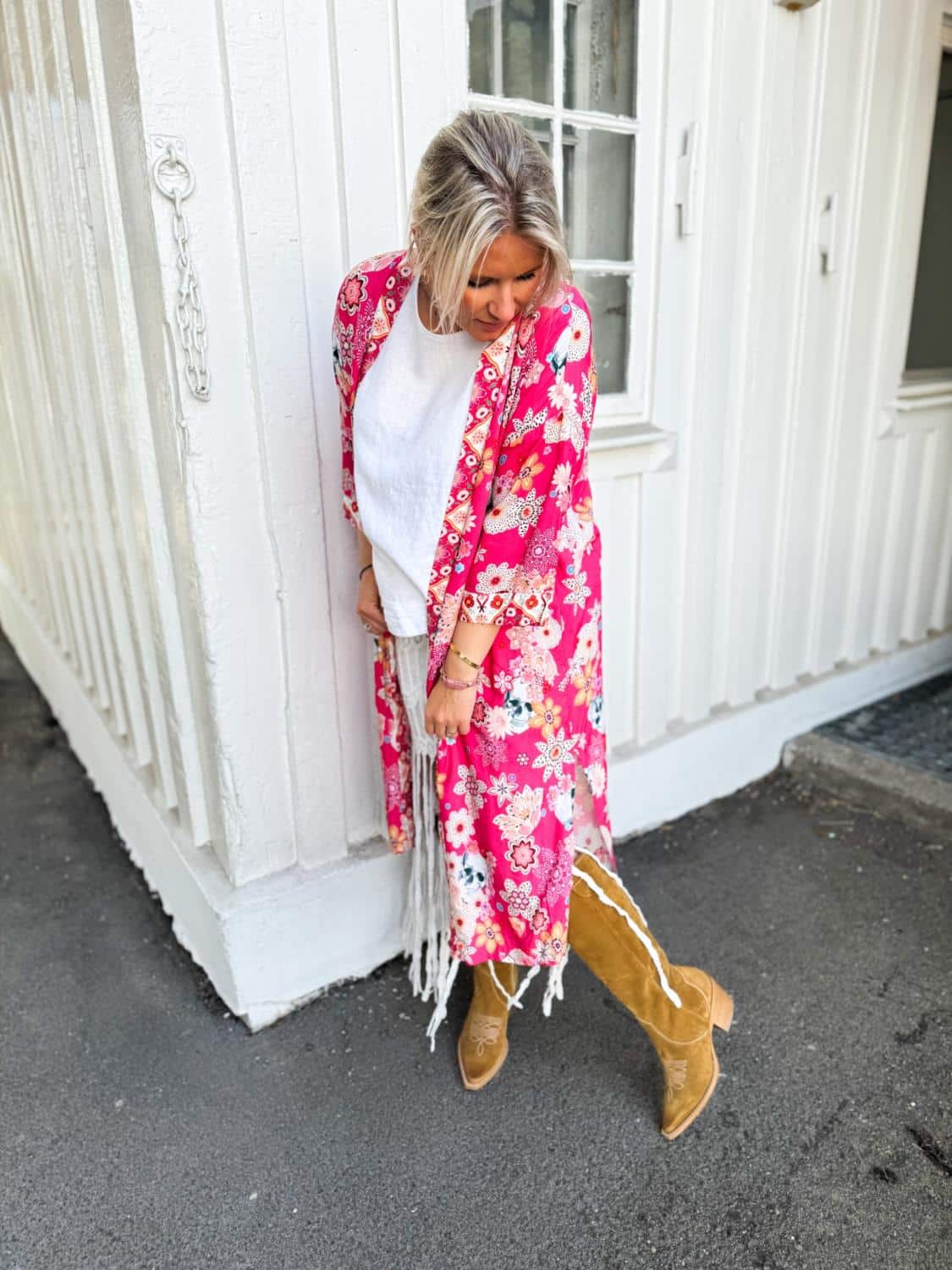Superfin og sommerlig kimono med herlig print i lekre farger!