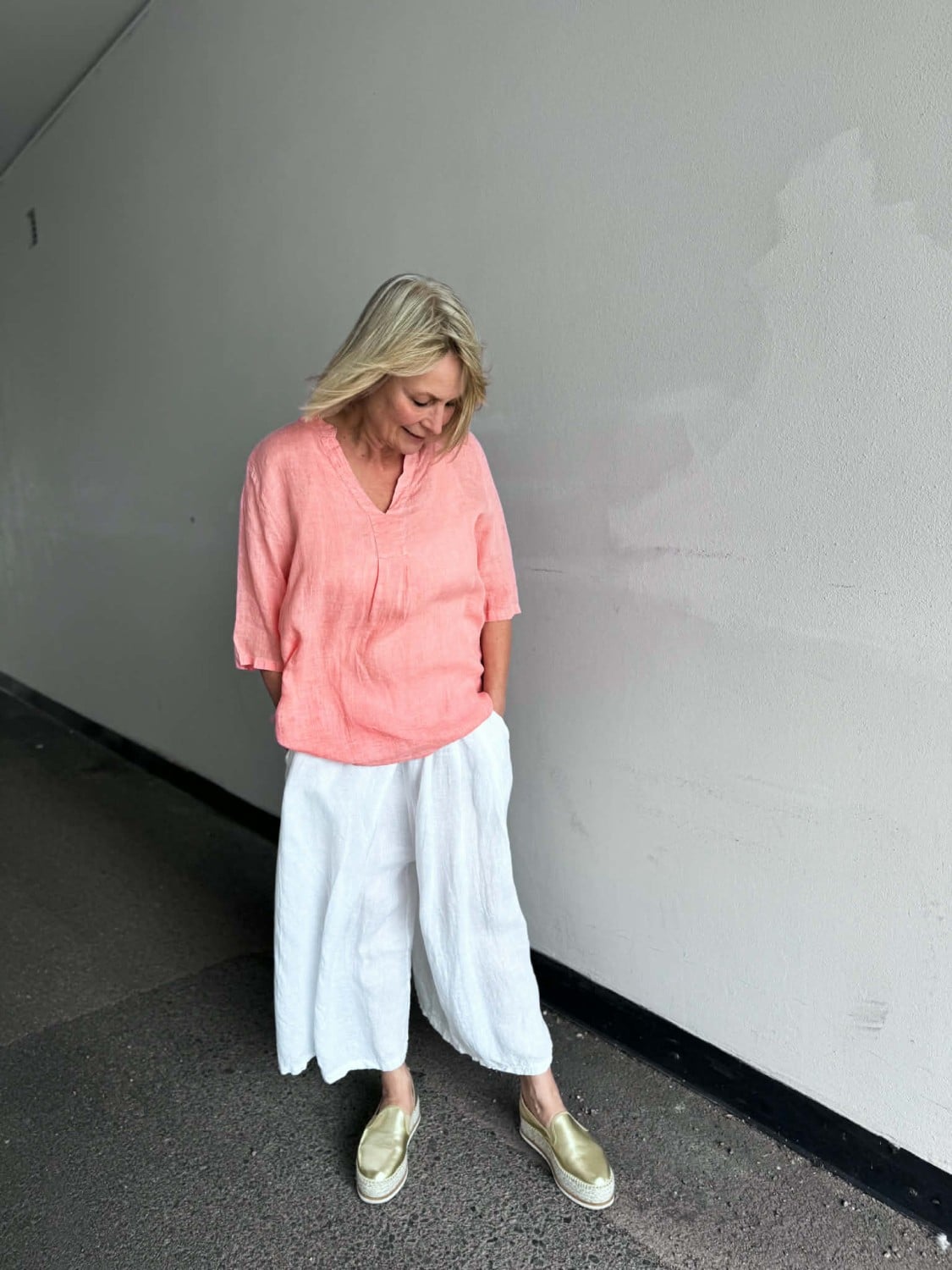 Herlig linbluse i en delikat farge.