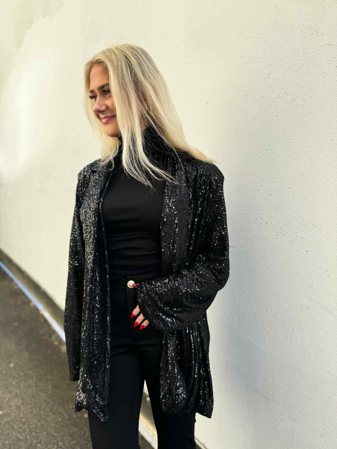 Denne paljett – jakka er så fin! Oversize og kul look på denne jakka. Den er one size og passer en 34-44 ca..