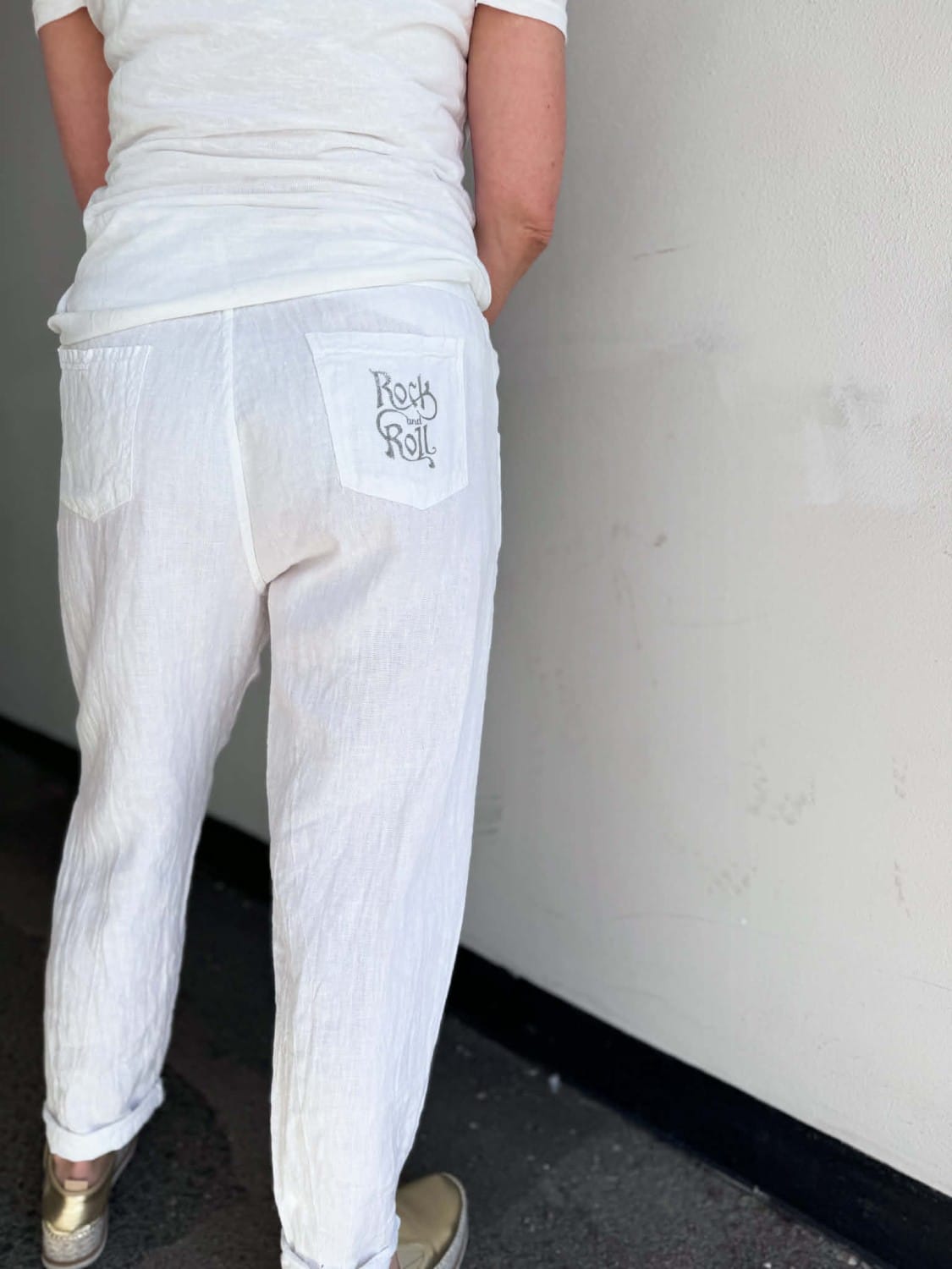 De perfekte linbuksene med «rock&roll» bak på lomma.