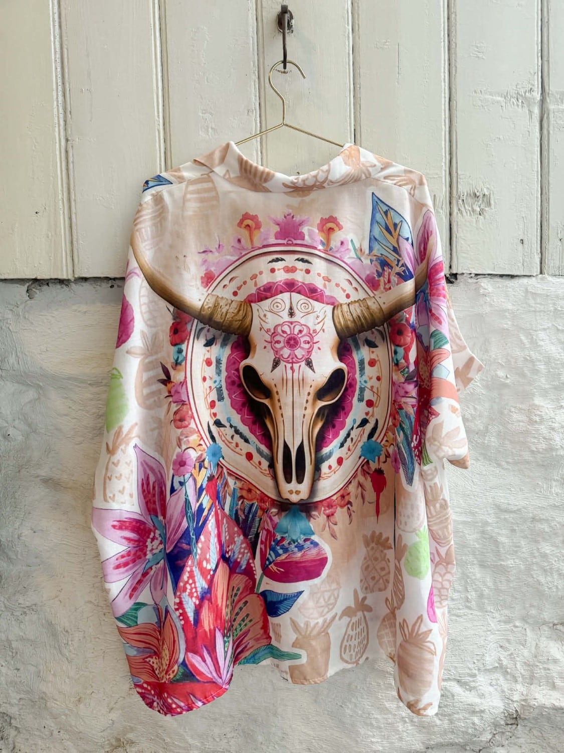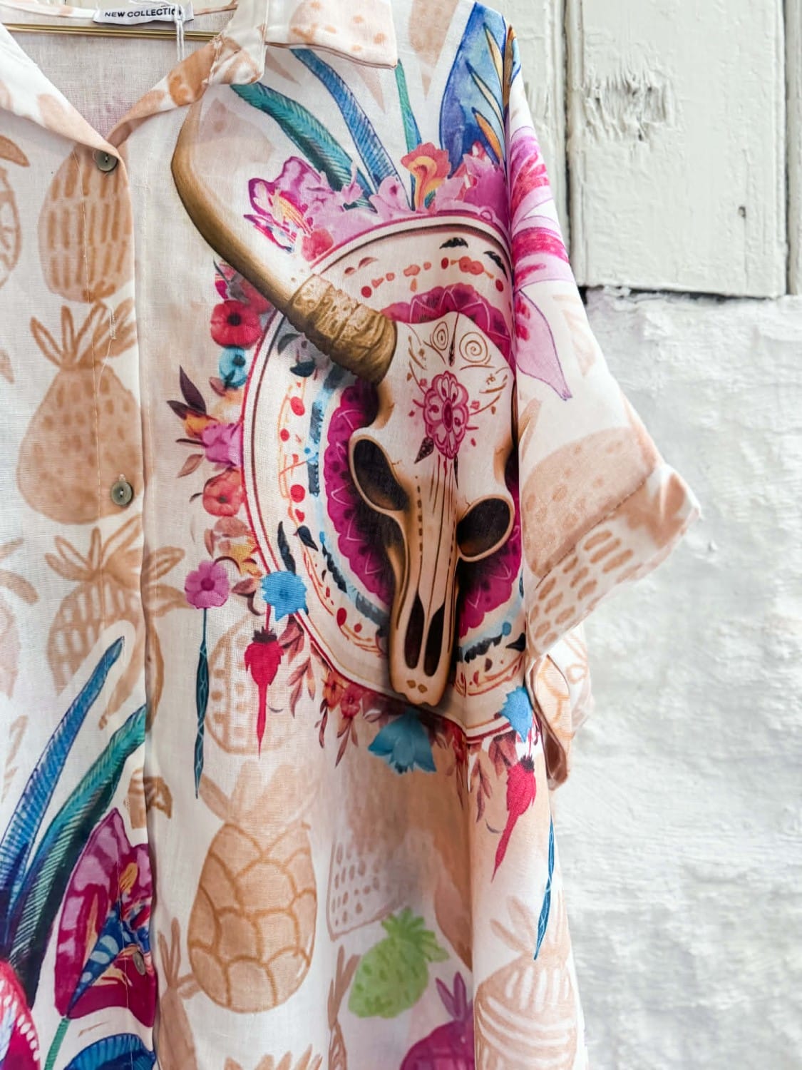 Lekre farger og mønster i denne skjorta. Knepping i front – slik at du kan bruke denne som en jakke.