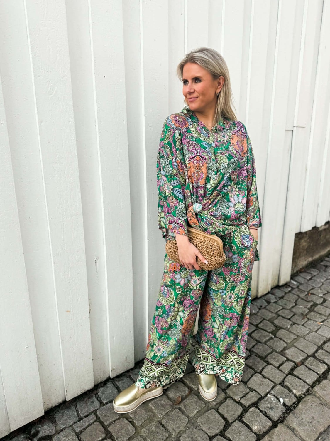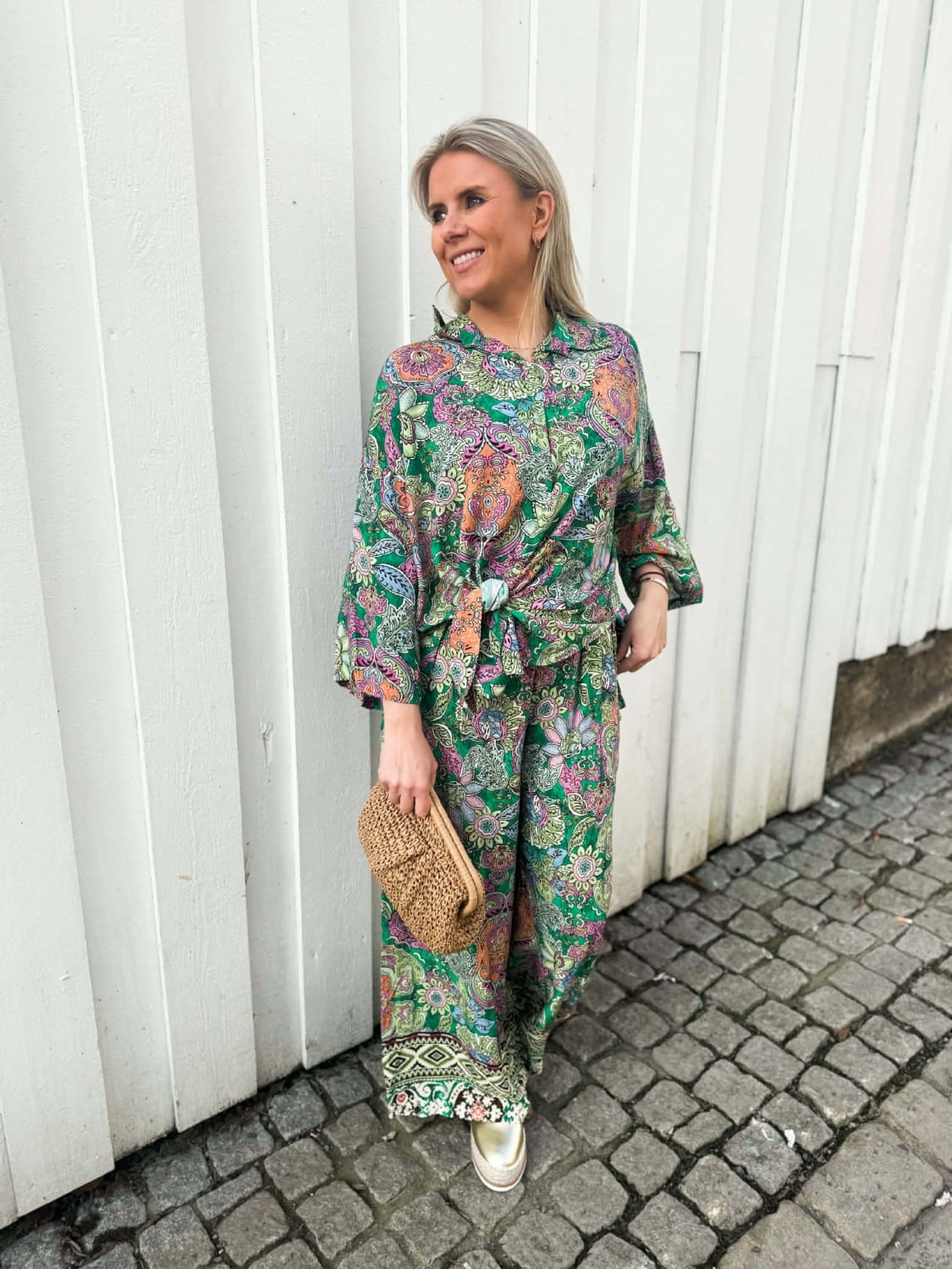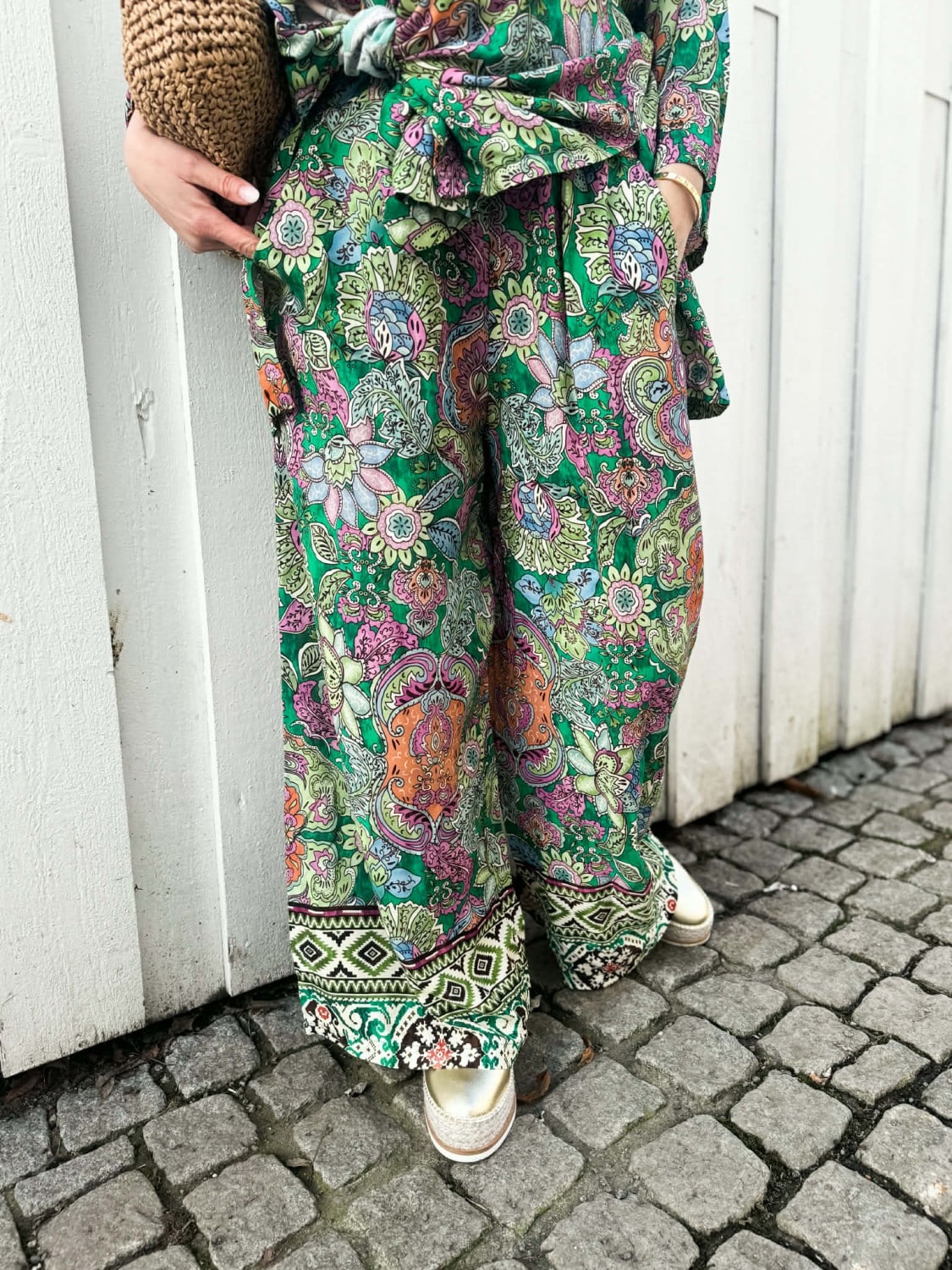 Lekre farger og print. Det selges som et sett og er i 100% viskose.