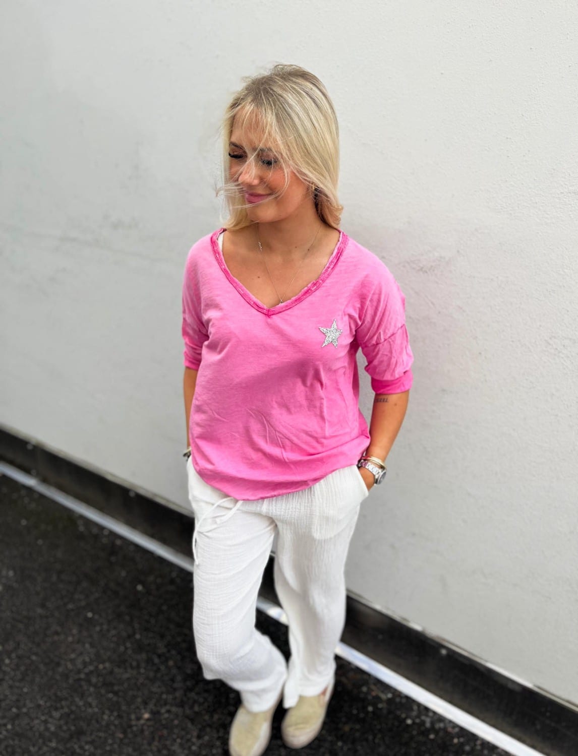 Genseren har en stjerne på venstre side og en paljett kant nederst og ved halsen.