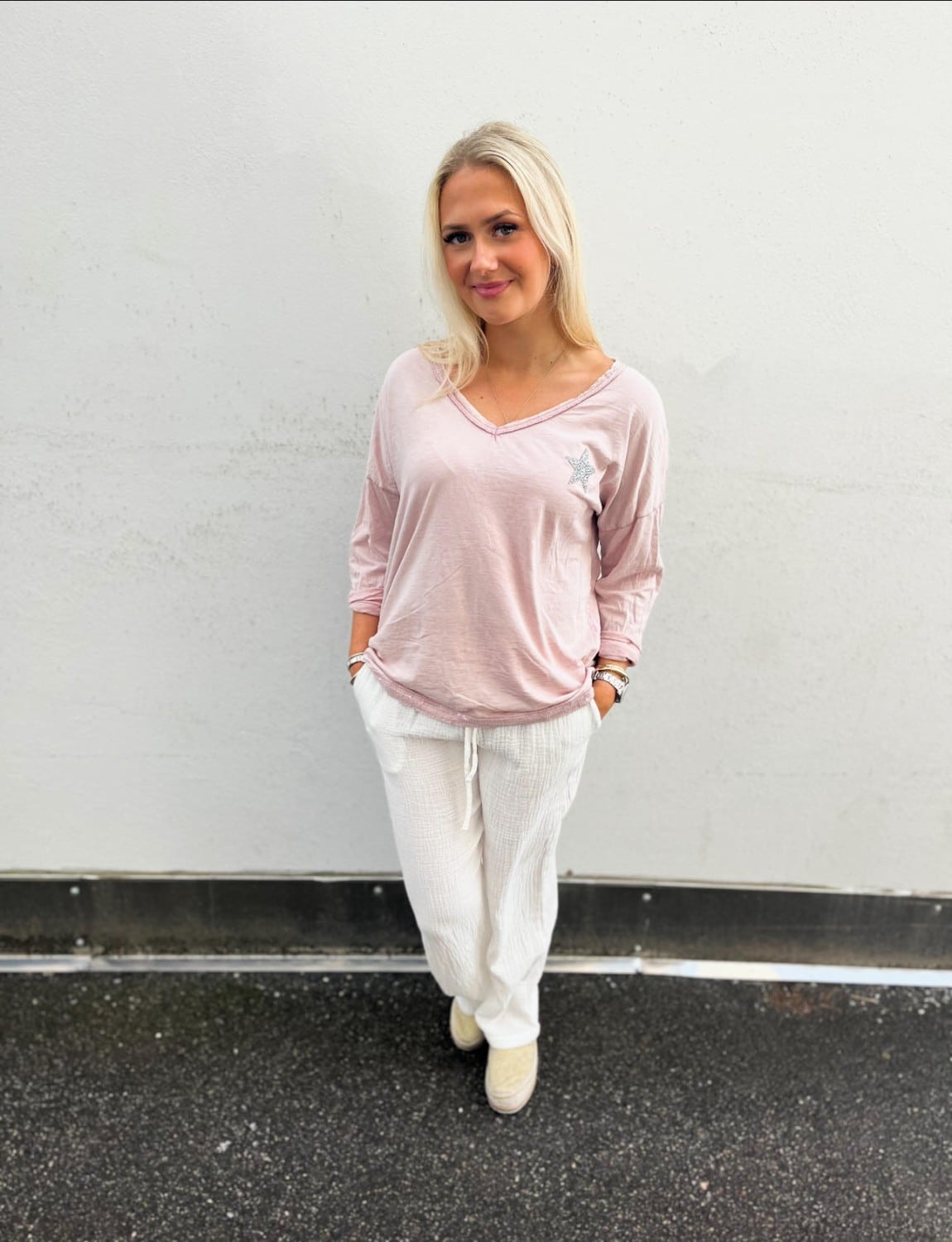 Genseren har en stjerne på venstre side og en paljett kant nederst og ved halsen.