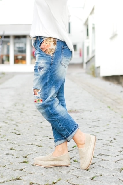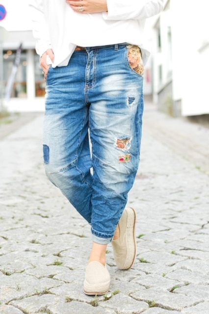 Dette er en «baggy» bukse som skal trekkes litt ned. Veldig behagelige å ha på seg. Buksen har stretch.