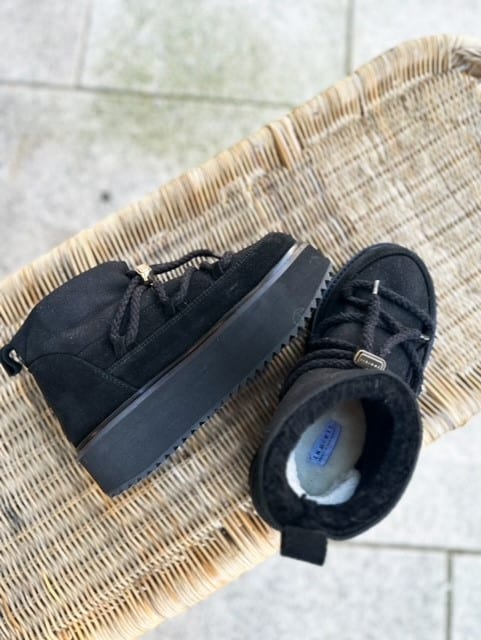 Sneaker Classic fra Inuikii. Siden lanseringen har Sneaker Classic fra Inuikii vært en bestselger. Den er fôret med deilig saueskinn holder den deg varm på bena, og har en semsked yttersiden som er vannavstøtende. Sålen er designet med tanke på snø og glatt underlag, og gir godt grep på vinterføre. Den er designet i Sveits og forener Inuikiis visjon om å kombinere en praktisk form og funksjon med tidløs stil.