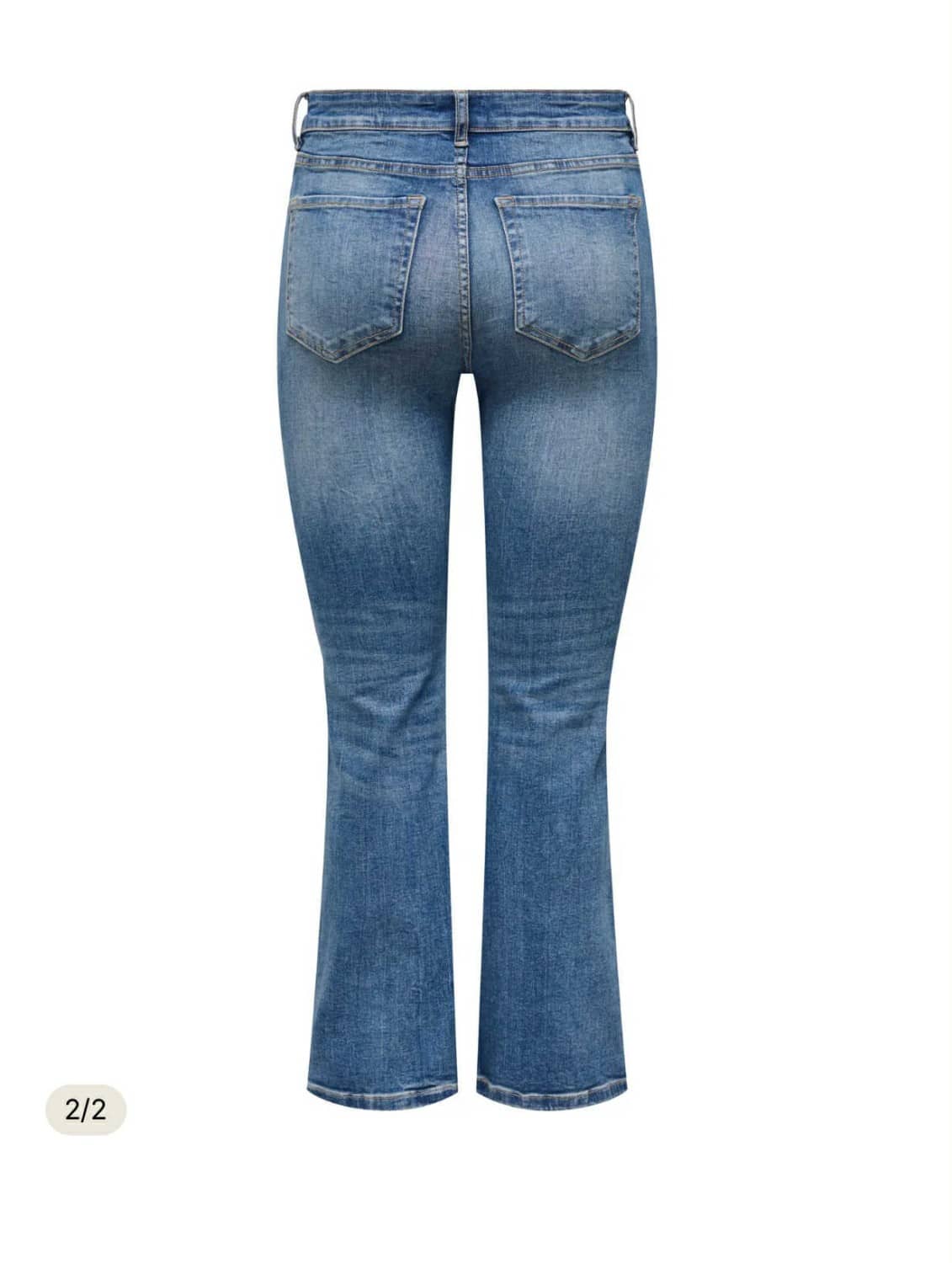 Jeansen er ca en 28 lengde da den skal være en «kort» flaire modell nå utover våren og sommeren.