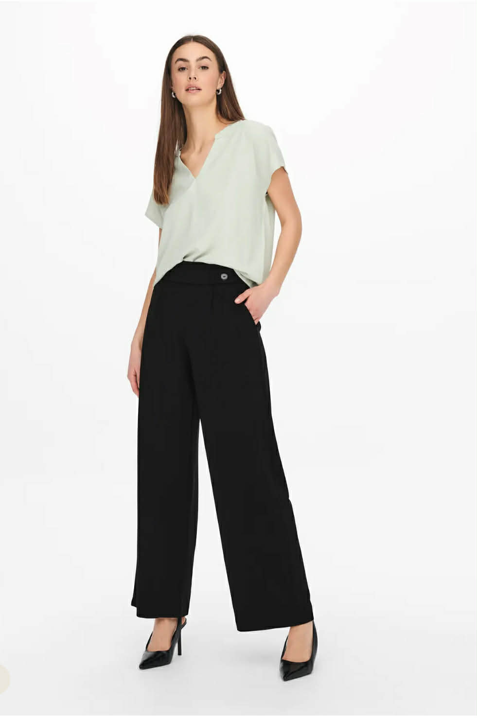 Detaljer som knapper i front og et lite legg, som får buksen til å være perfekt til alle anledninger.
