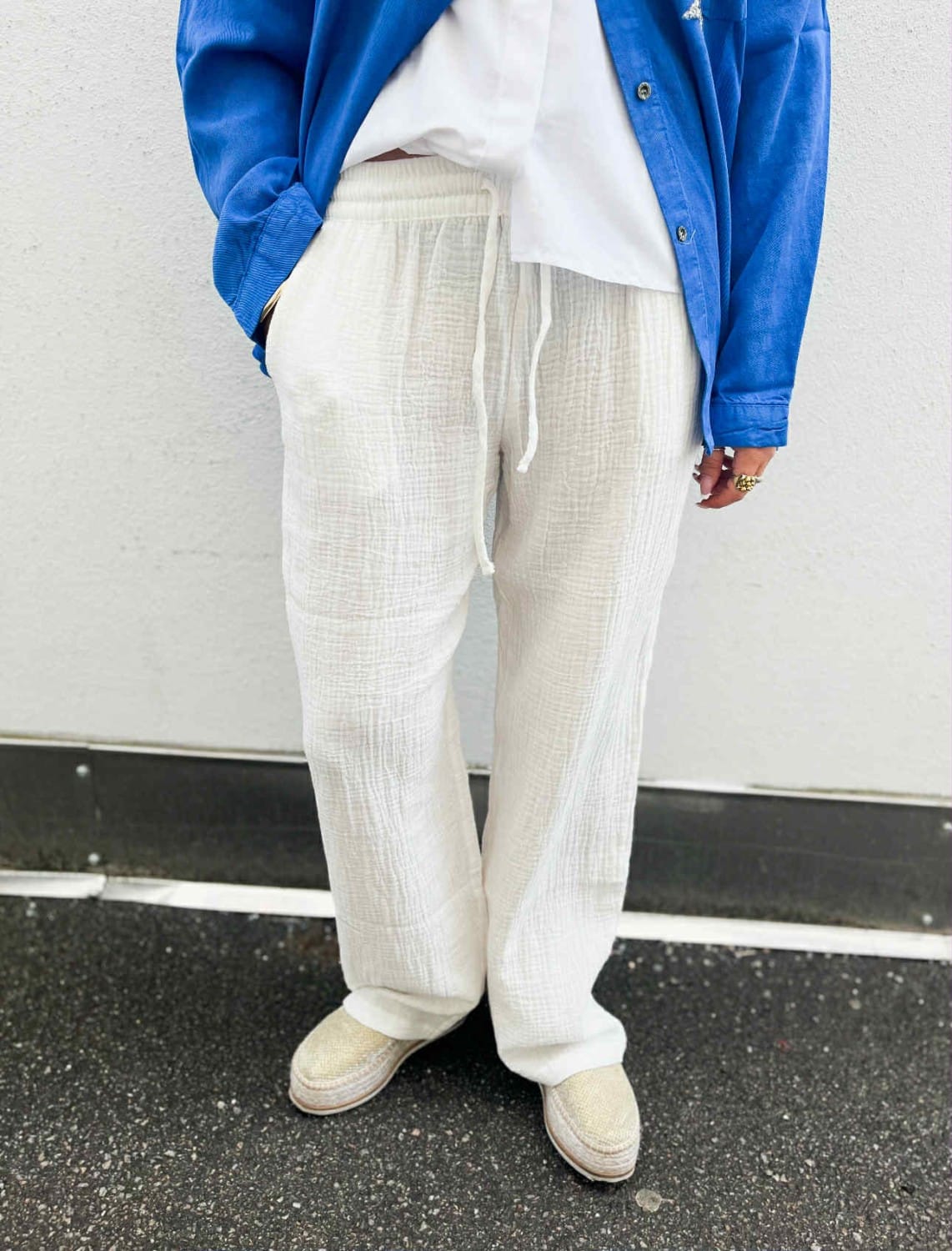 Disse buksene er bare så gode på! Strikk i livet, lommer og knyting i livet.