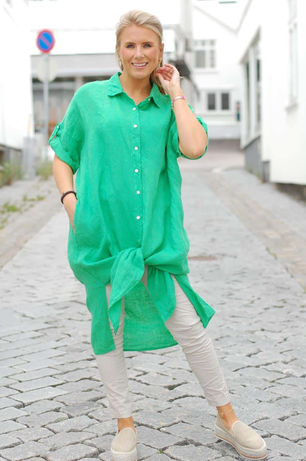 Karina Linskjorte Lang Green