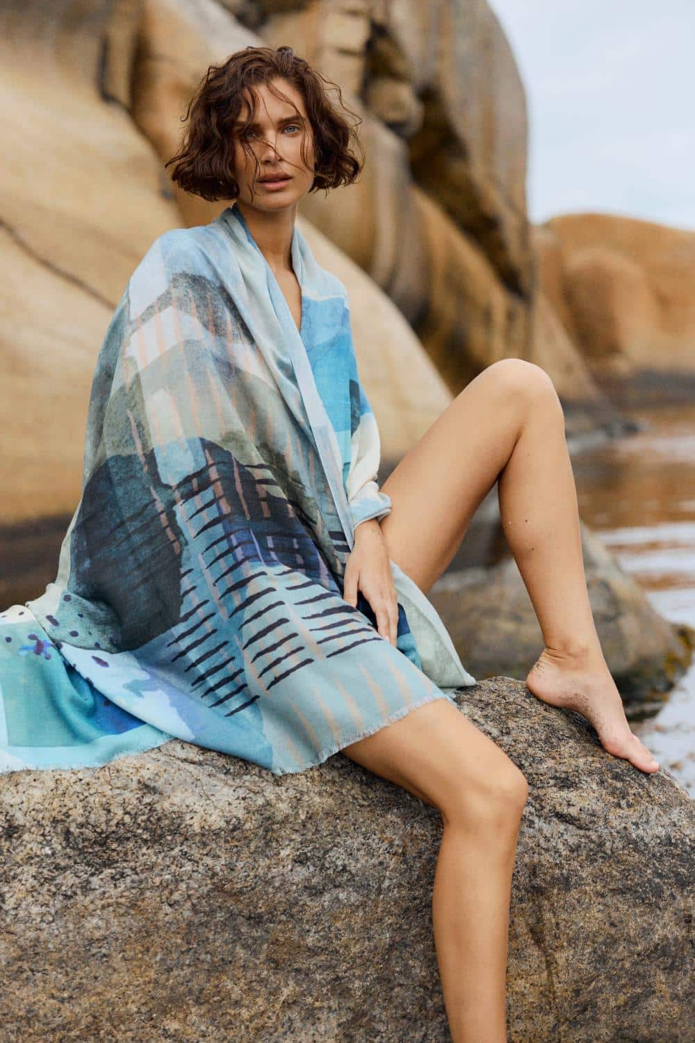 Skjerfet kan brukes både som sjal, skjerf og pledd.