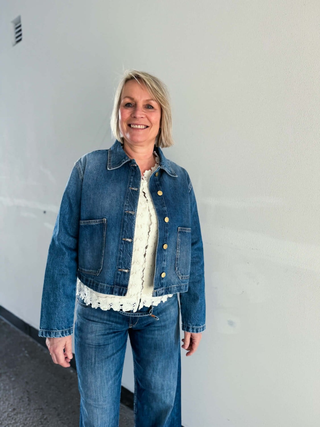 Denne denim jakka er bare så fin! Perfekt farge – tøffe detaljer og snitt.