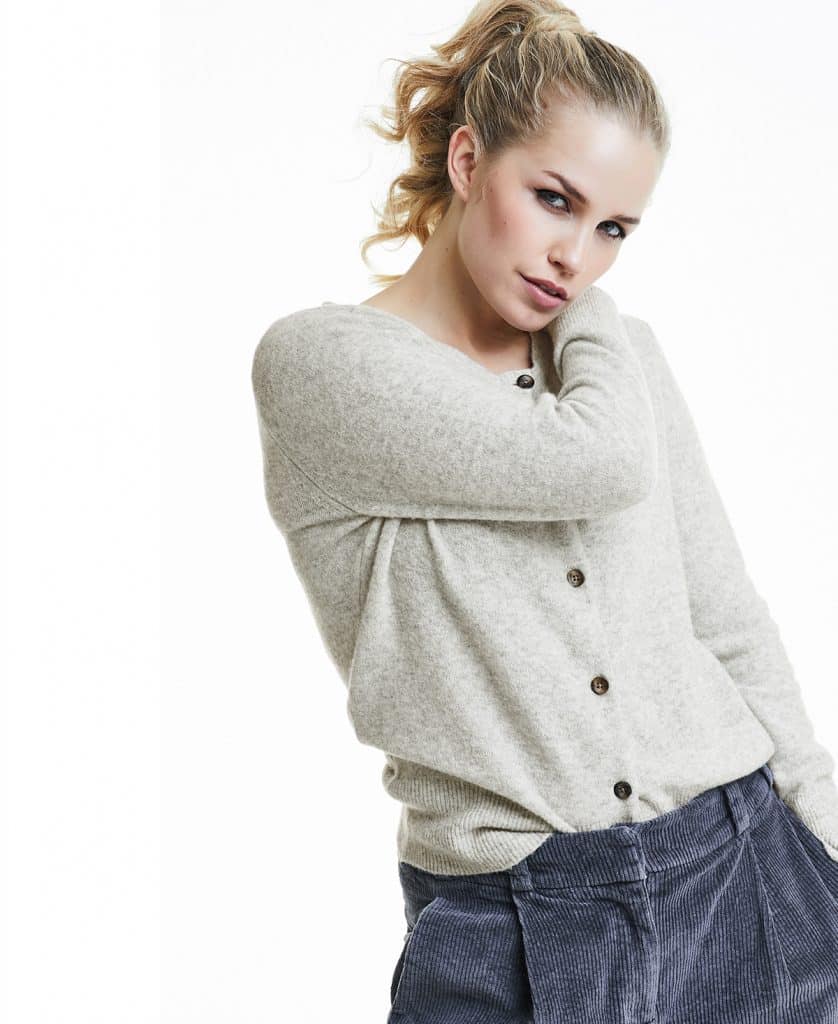 Cardigan i ullmiks med rund hals.