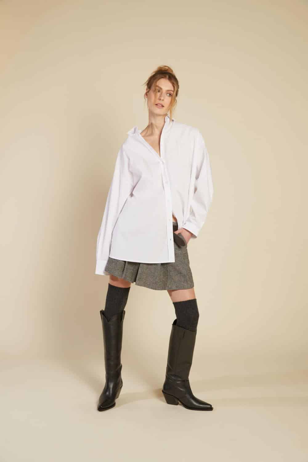 En lomme i front med en «L» brodert inn. Stella Solid Blouse er i en one size. Passer en som bruker fra en xs-xl.